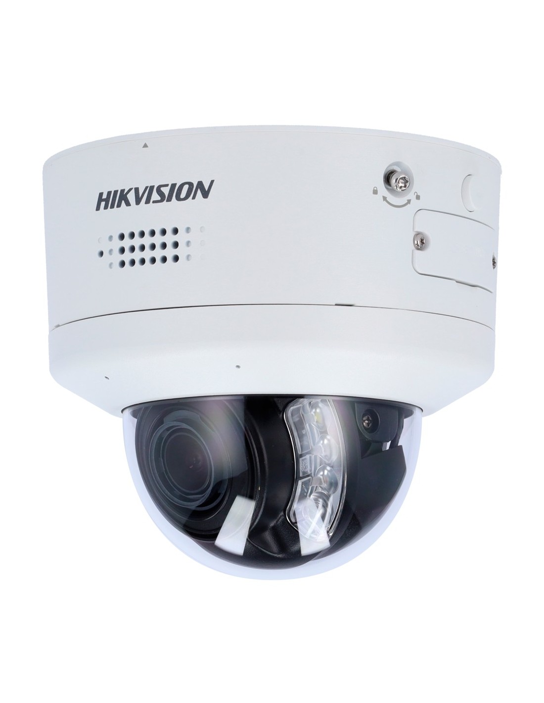 Hikvision cámara Domo IP gama PRO 4 MPx - Lente varifocal 2.8~12 mm | PTRZ motorizado - Sirena y luz disuasoria | Micrófono dual array - PoE+ | Audio | Alarmas | MicroSD - IR alcance 40m | Detección de movimiento 2.0 - AcuSense | Reconocimiento facial | IP67, IK10