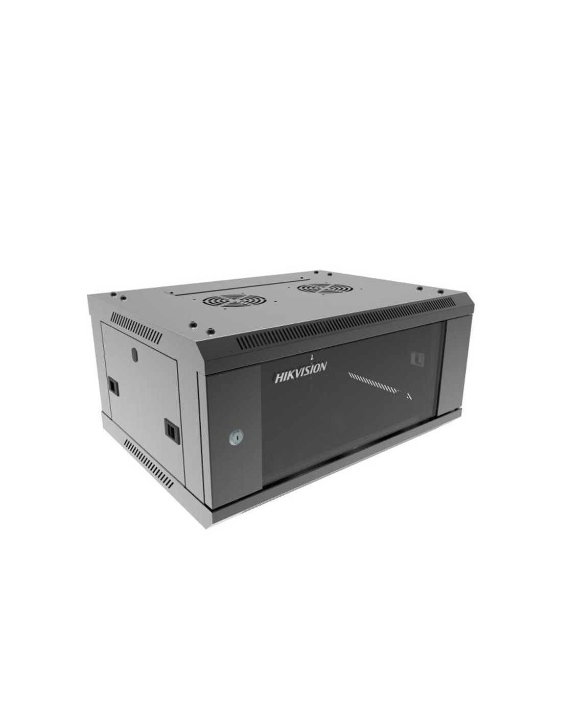 Armario mural RACK 4U 19" | Hikvision. | Se entrega desmontado | Dimensiones: | 600 mm (ancho) x 450 mm (profundidad) x 281 mm (alto) | . Peso:14.5kg. Capacidad de carga 40kg | Espacio para ventiladores adicionales. | Puertas delanteras y traseras con cerradura | . Paneles laterales desmontables | Rieles de montaje ajustables. | Gestión de cables integrado