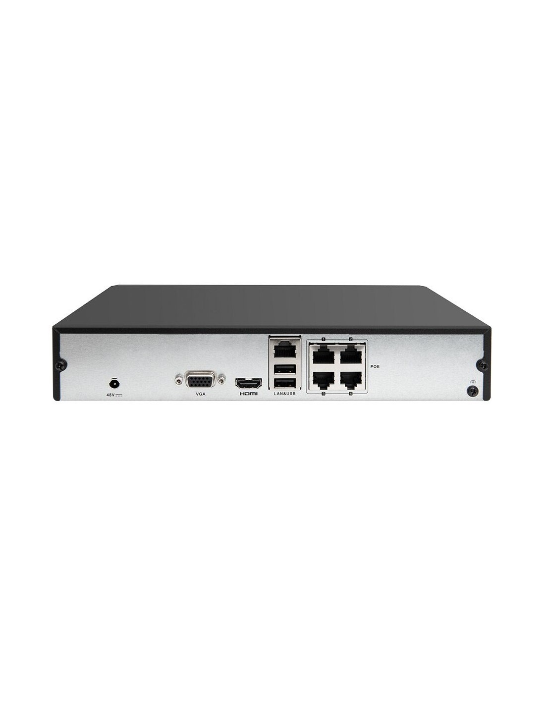 Grabador NVR IP | 4CH 4POE 4MP | 40/60Mbps mini 1U HDMI/VGA simultánea 1HDD Funciones inteligentes analítica | Salidas VGA, HDMI. H.265+ | 4 PoE independientes | Ancho de banda 40/60Mbps | Grabación hasta 4MP | Admite | 1 Disco Duro 6 | TB