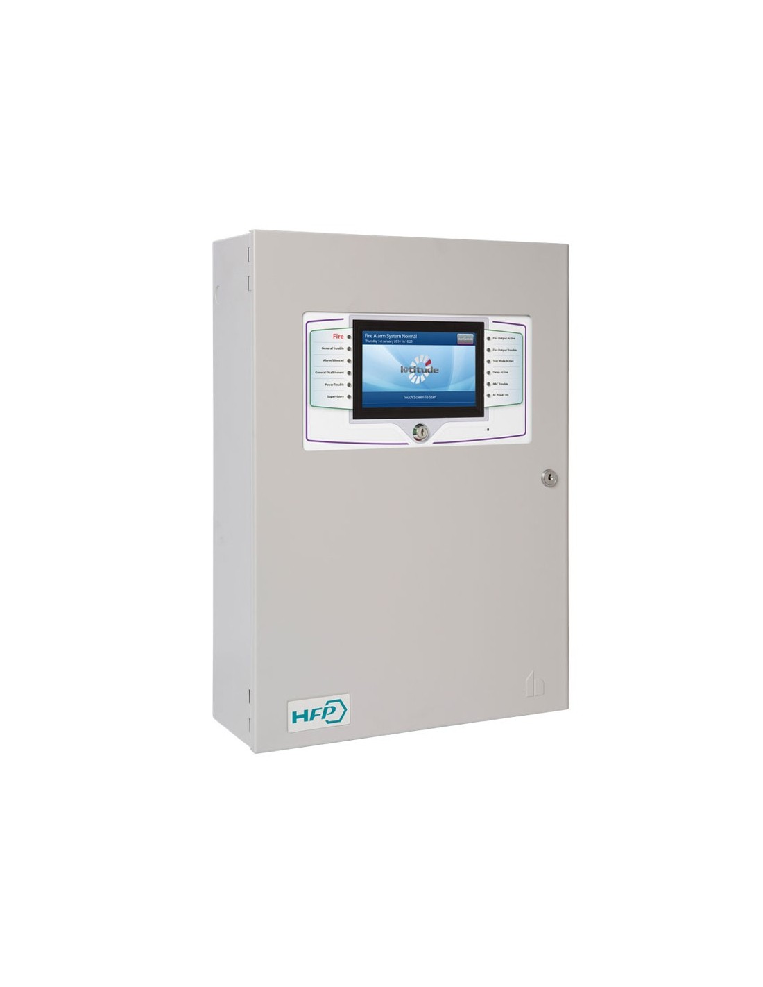 Panel de control analógico direccionable L@titude de 2 lazos. 127 elementos direccionables protocolo ESP de Hochiki. Versión de 4 ranuras para ampliación de lazos. Pantalla táctil color de 7". 1 puerta de apertura. 0 indicadores de zona. Sin impresora. Admite baterías de hasta 26Ah. Fuente de 5,25A. Caja estándar. EN54-2, EN54-4
