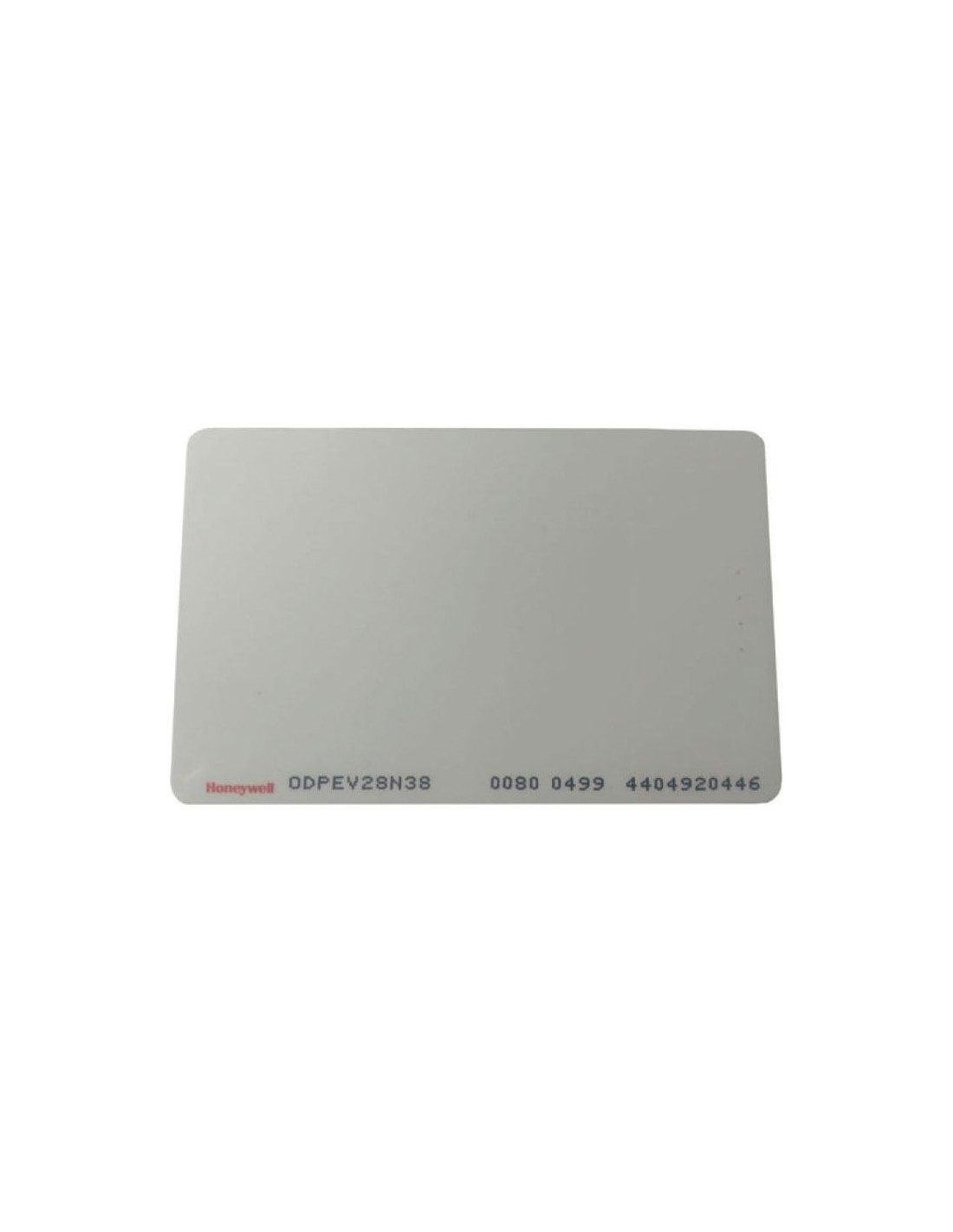 Tarjeta de PVC ISO 8K DESFire EV2. Color blanco imprimible con logo Honeywell. Frecuencia 13,56MHz. Rango de lectura de hasta 2 cm. Compatible con perforación vertical u horizontal