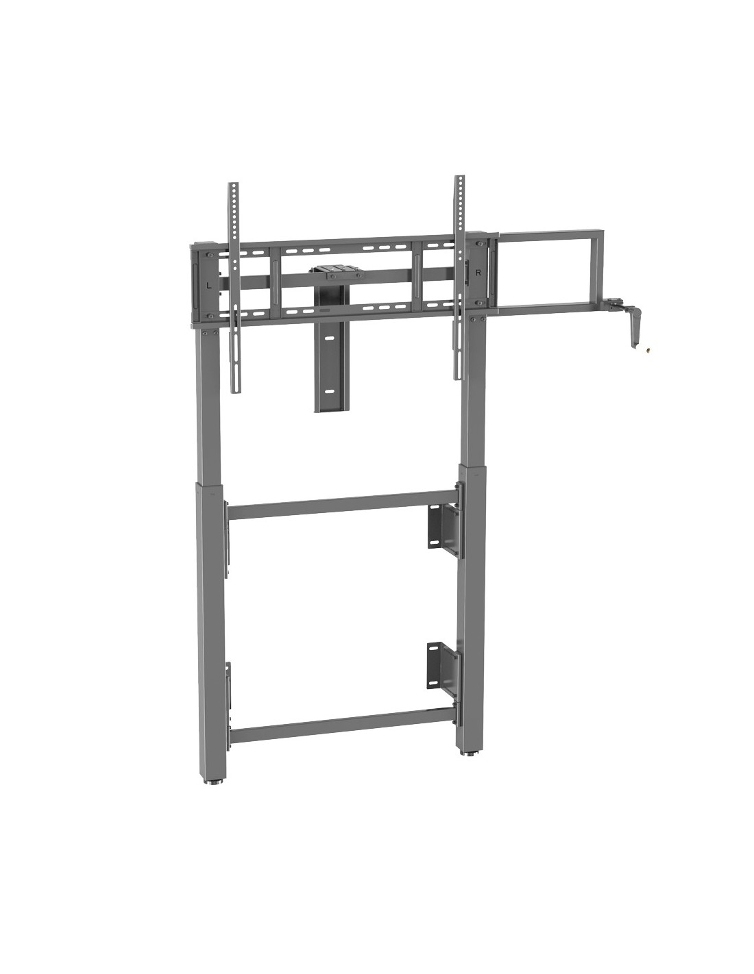 Además, este soporte ofrece la posibilidad de ajustar la altura a través de una manivela.