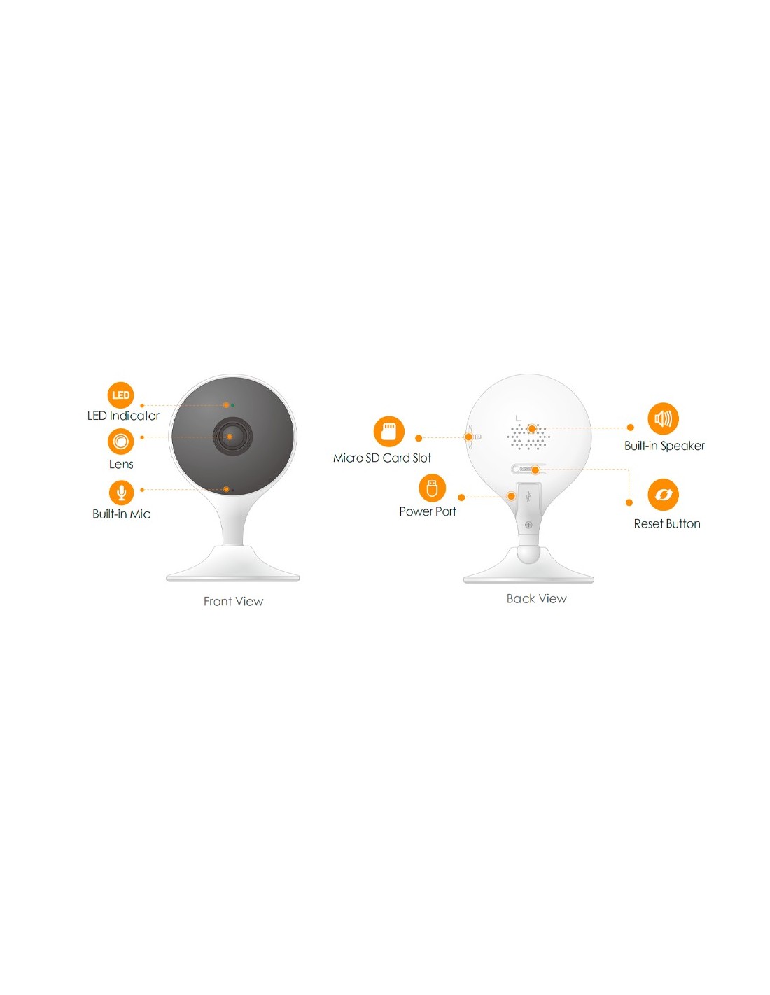 Cámara fija Cue 2 2MP - WiFi 2.4 GHz - 2.8 mm / IR 10m - Audio bidireccional / Sirena - Detección de sonidos y humanos - Apto para interior