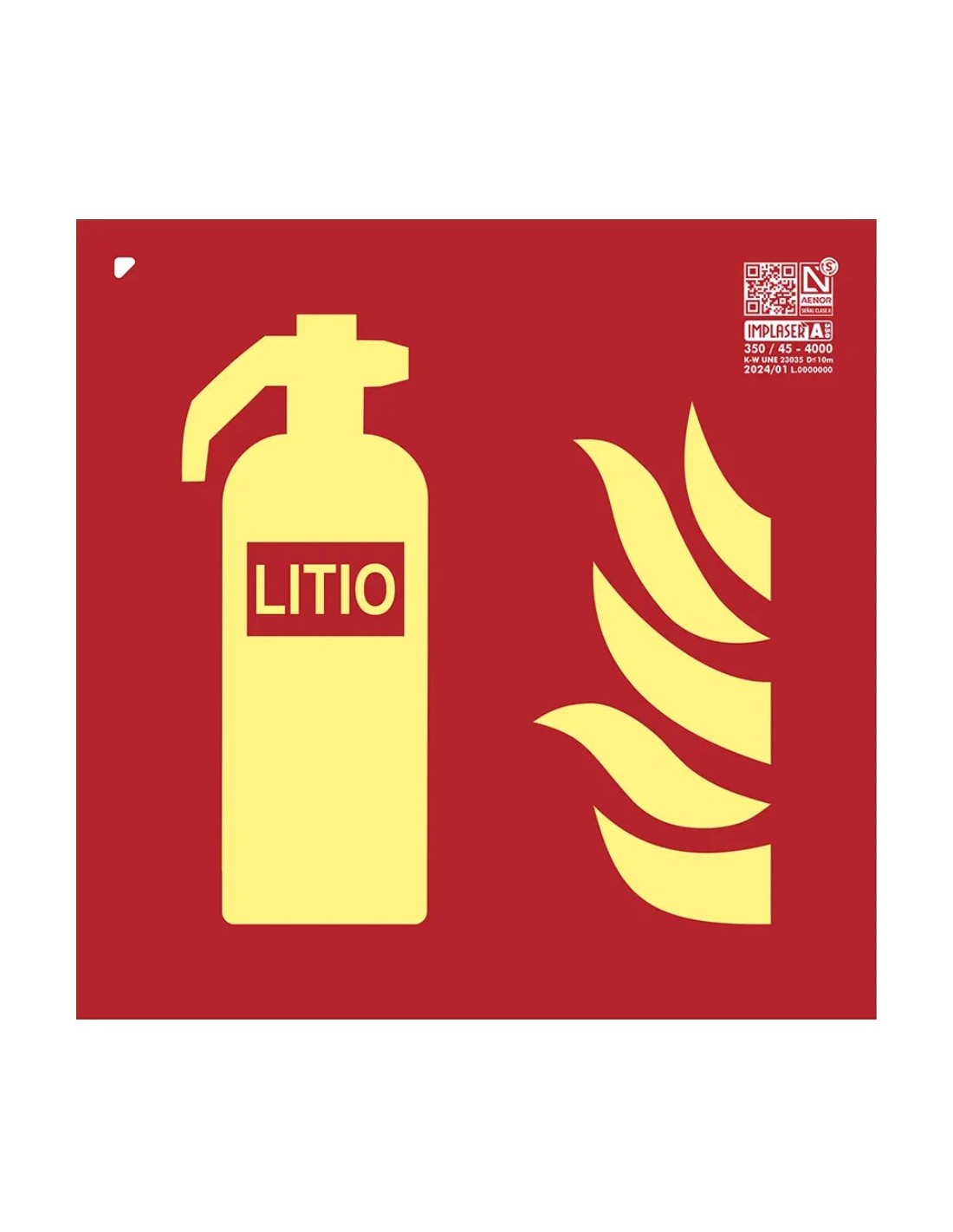 IMPLASER EX232L Señal extintor litio Clase A 21x21cm