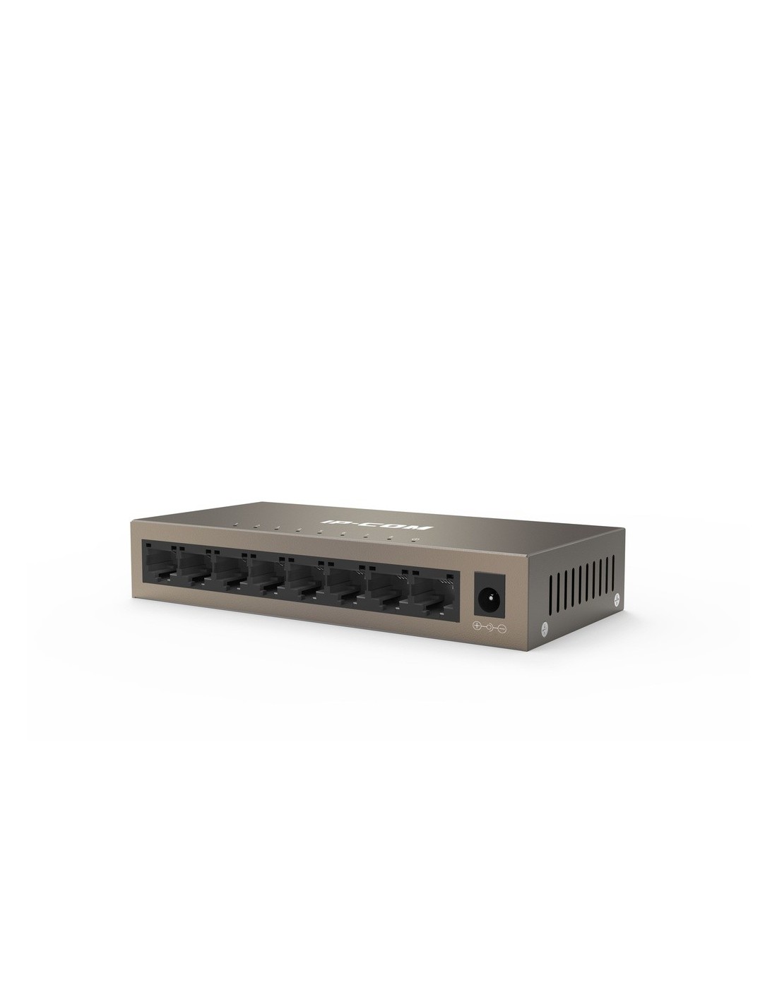 Switch compacto 8 puertos no gestionable Gigabit | IP-COM | Capa | L2 | Direcciones MAC 4K Enrutamiento estático | RJ-45 Ethernet Gigabit (10/100/1000 Mbps) | Bidireccional (Full duplex). Capacidad | conmutación 16 Gbit/s. | Acero Color Bronce. Sobremesa y pared. Protección eléctrica | Dimensiones :140 x 66.5 x 25.3 mm (el más compacto del mercado)