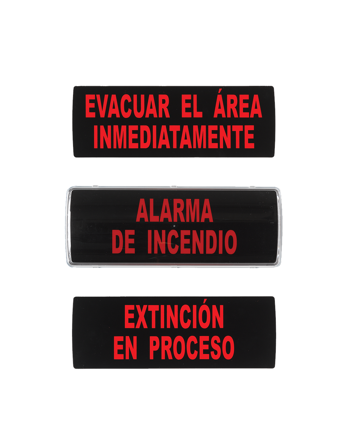 Rótulo evacuación con zumbador de 90dB. Caja de plástico 3 insertables incluidos. IP41