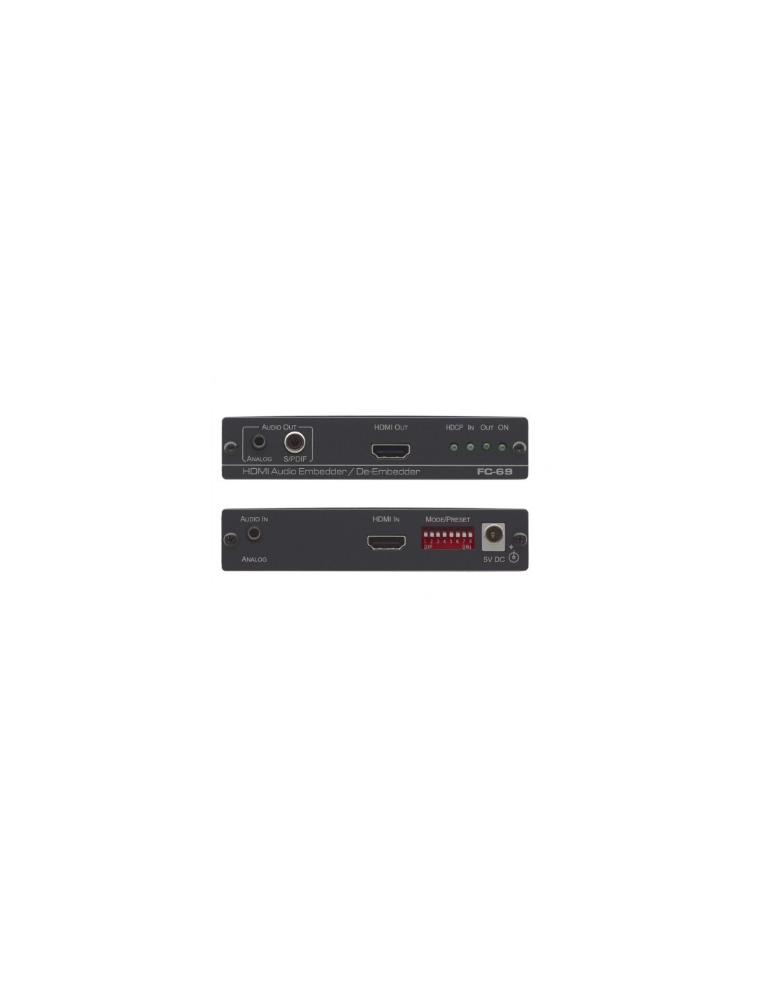 Kramer Electronics FC-69. Color del producto: Negro, Material de la carcasa: Aluminio, Certificación: HDMI, HDCP, CE, RoHs, WEEE. Ancho de banda: 8,91 Gbit/s. Interfaz de host: HDMI. Voltaje de operación: 5 V, Corriente de operación: 0,5 A. Ancho: 120 mm, Profundidad: 71,5 mm, Altura: 24,4 mm