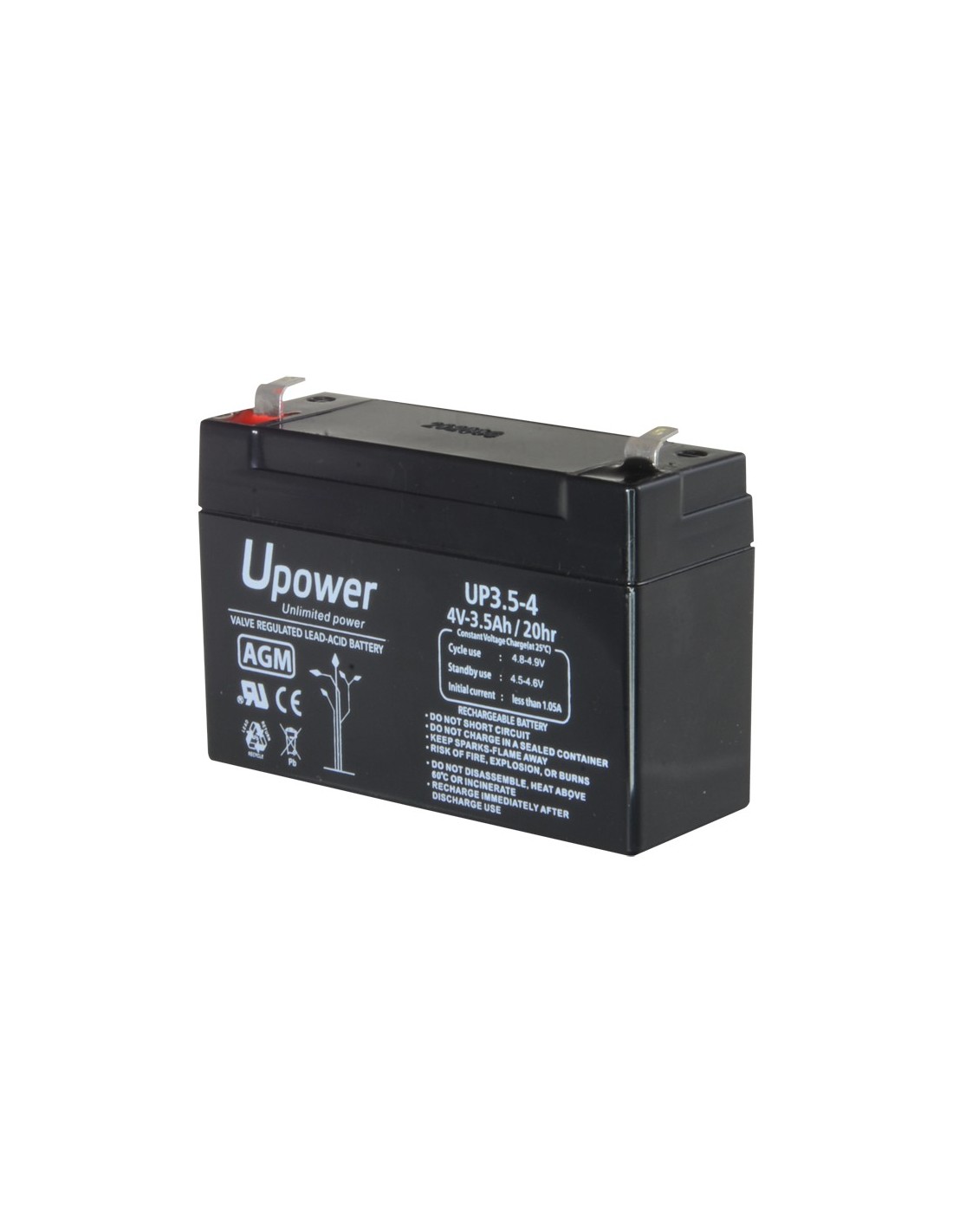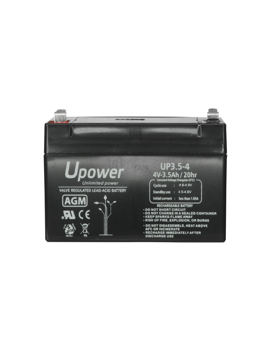 Upower - Batería recargable - Tecnología plomo ácido AGM - Voltaje 4 V - Capacidad 3.5 Ah - 65 x 90 x 34 / 420 g - Para respaldo o uso directo
