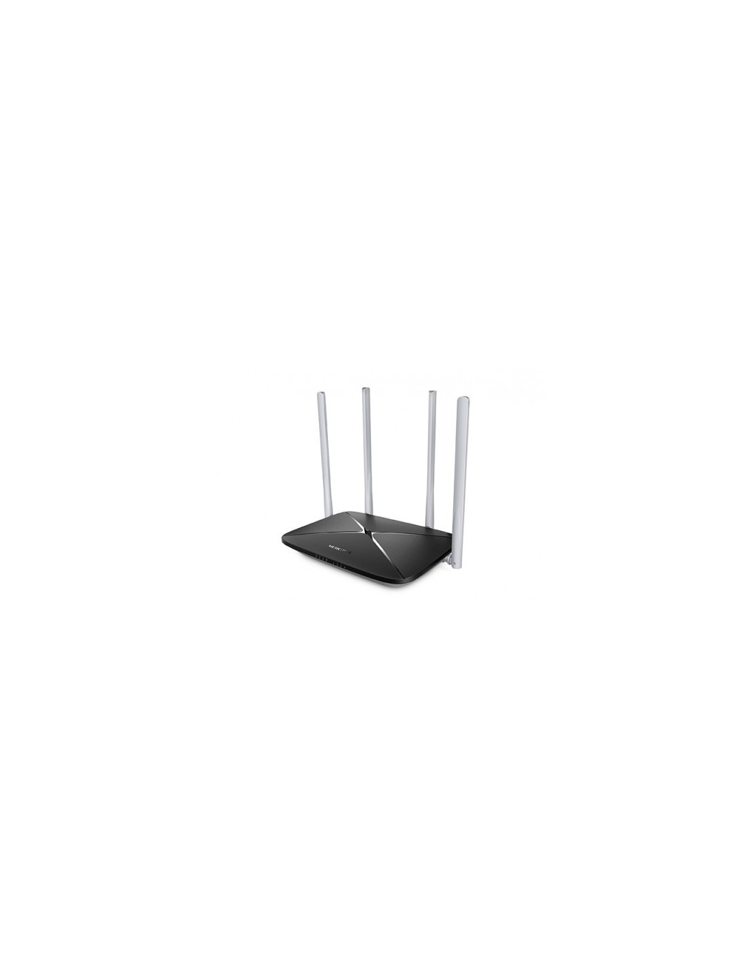 Mercusys AC12. Banda Wi-Fi: Doble banda (2,4 GHz / 5 GHz), Estándar Wi-Fi: Wi-Fi 5 (802.11ac), Tasa de transferencia de datos WLAN (máx.): 867 Mbit/s. Tipo de interfaz Ethernet LAN: Ethernet rápido, Estándares de red: IEEE 802.11ac,IEEE 802.11b,IEEE 802.11g,IEEE 802.11n,IEEE 802.3,IEEE 802.3u, Ethernet LAN, velocidad de transferencia de datos: 10,100 Mbit/s. Algoritmos de seguridad soportados: WPA-PSK,WPA2-PSK. Tipo de producto: Router de sobremesa, Color del producto: Negro. Tipo de antena: Externo, Ganancia de la antena (max): 5 dBi