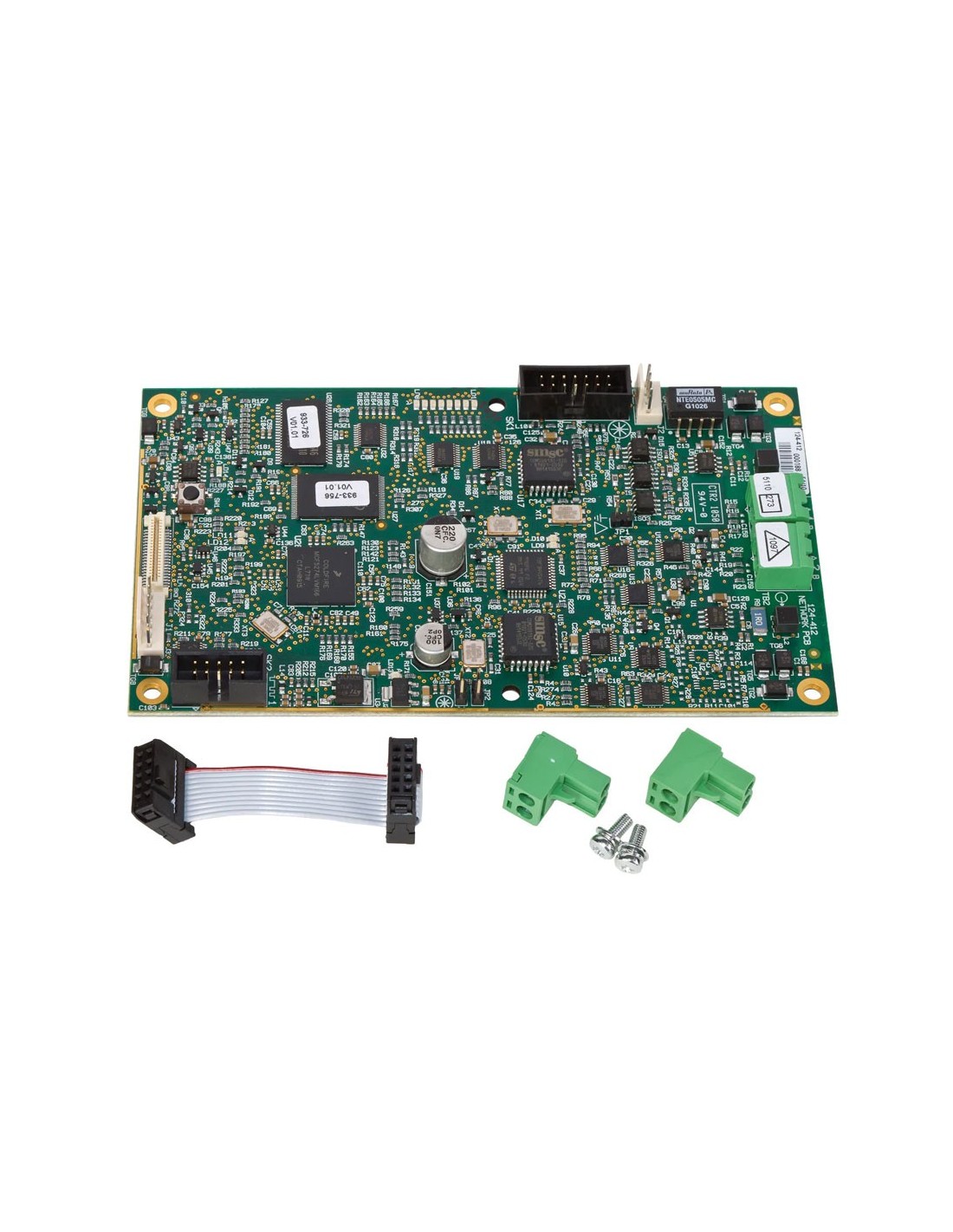 Módulo de red para conexión de centrales DX-C. Tarjeta interfaz que permite conectar 2 o más centrales DX CONNEXION en red. Incorpora circuito de aislamiento eléctrico entre nodos. Distancia máxima entre nodos hasta 1200 metros (dependiendo del cable utilizado). Se precisa una tarjeta por central
