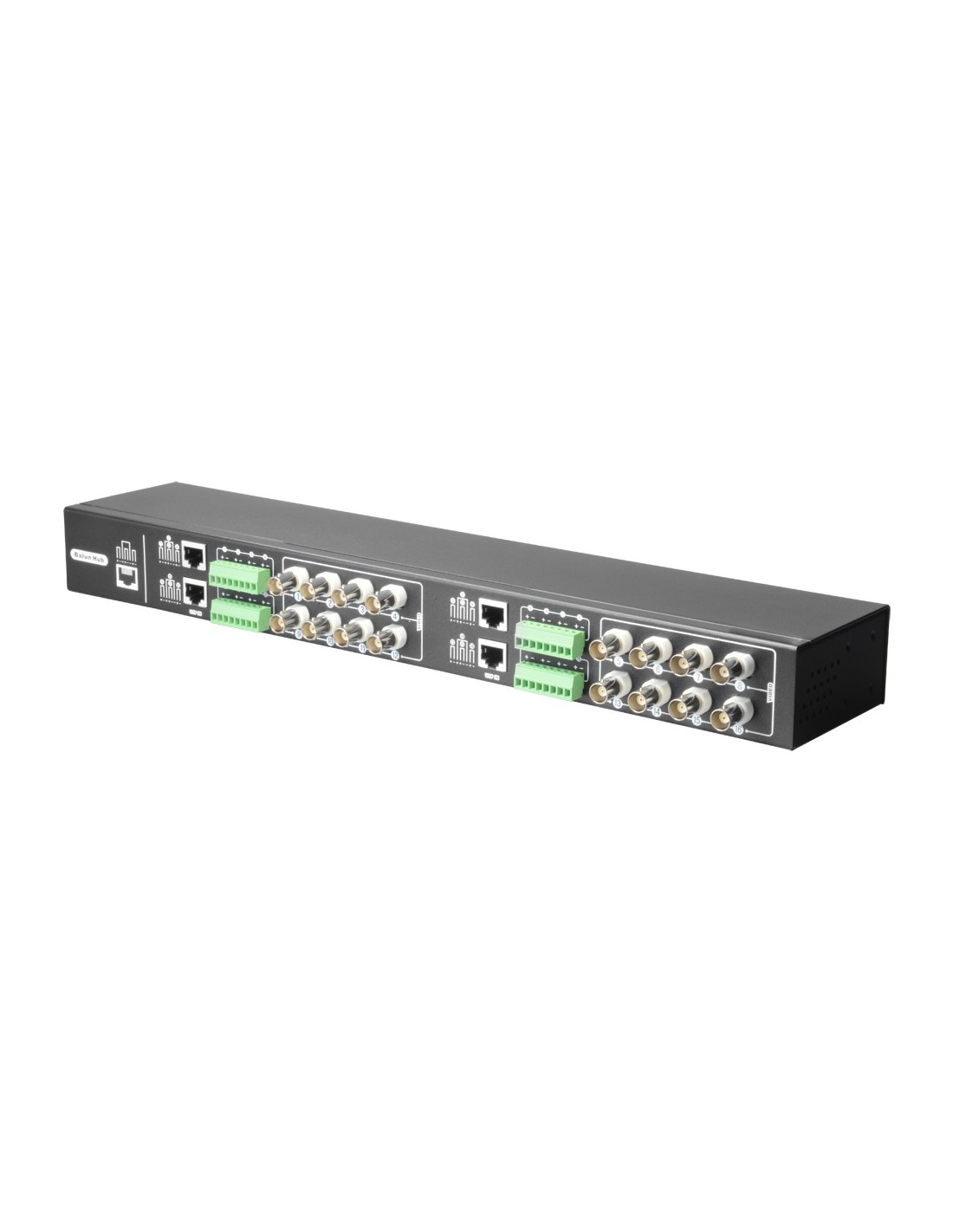 Video Balun 4N1 (HDTVI, HDCVI, AHD y CVBS) - 16 canales pasivos - Incluye 16 BA612P-HAC - Conexión BNC y RJ45 - Alcance: 180 ~ 440 m