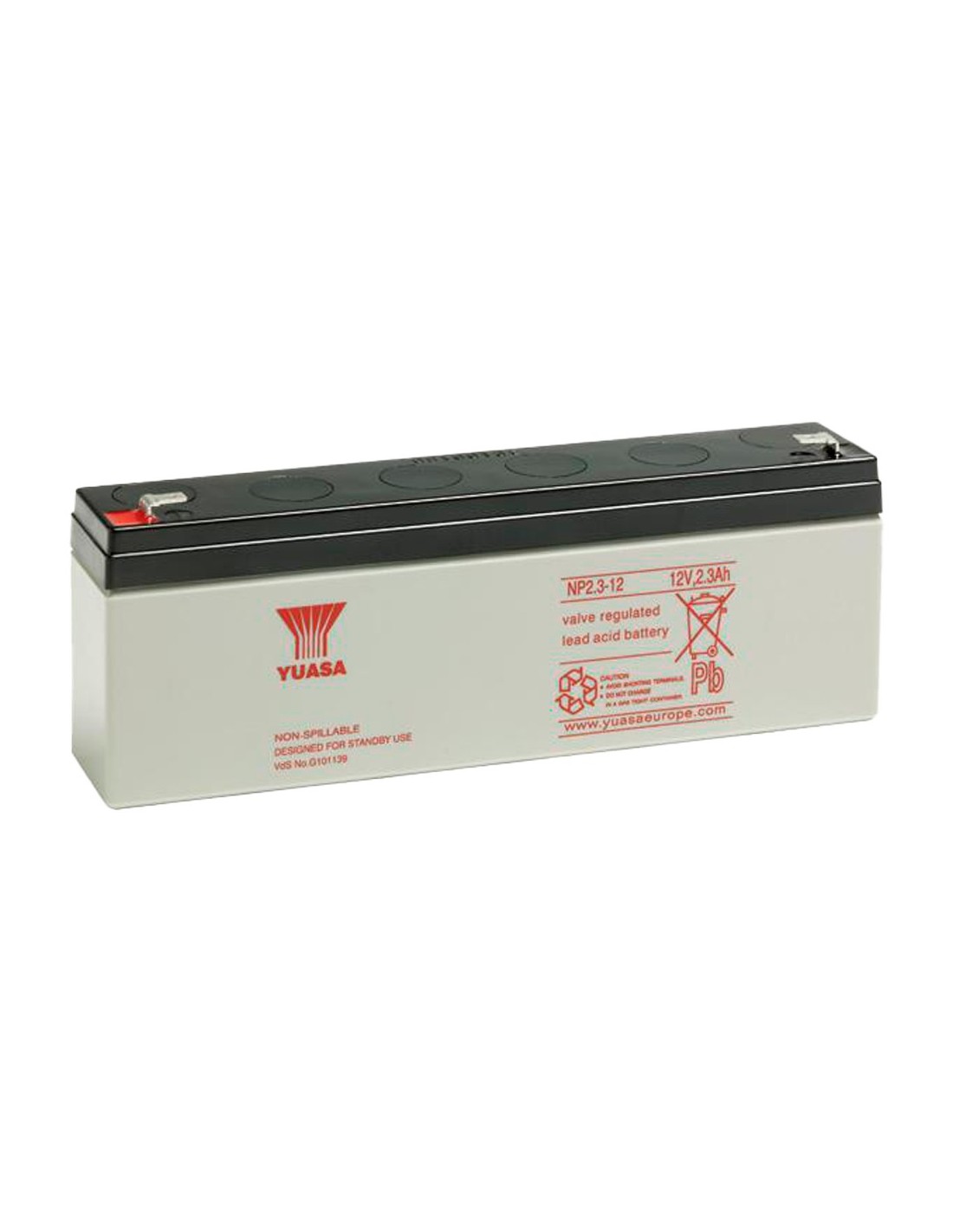 Yuasa NP2.3-12 - Batería recargable - Tecnología plomo ácido AGM - Capacidad 2.3 Ah / 12 V - 64mm x 178mm x 24mm / 950 g - Para respaldo o uso directo