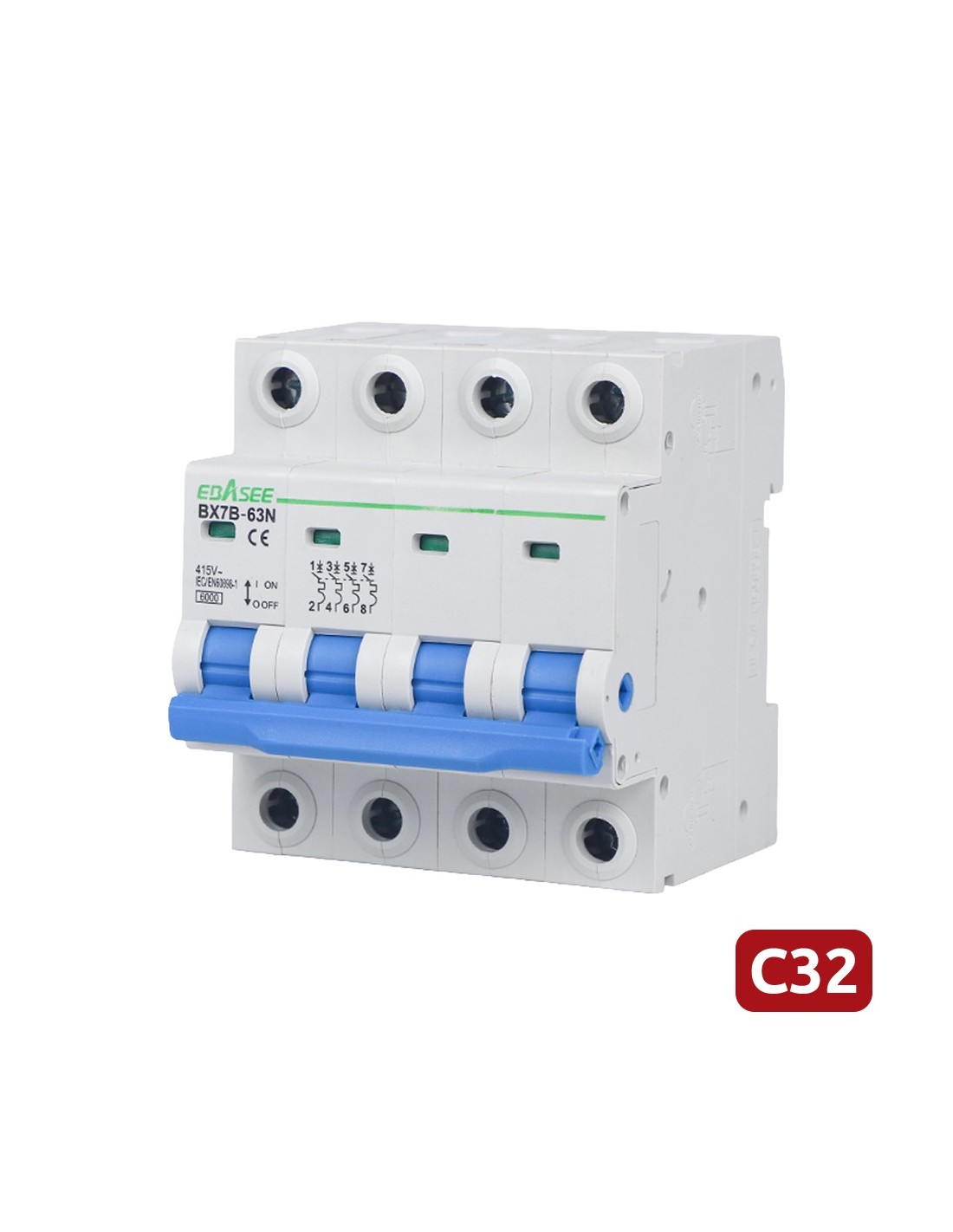 OEM BX7B-63N-32A-4P Interruptor magnetotérmico - Corriente nominal 32A - 4 polos (instalaciones trifásicas) - Curva tipo C - Par