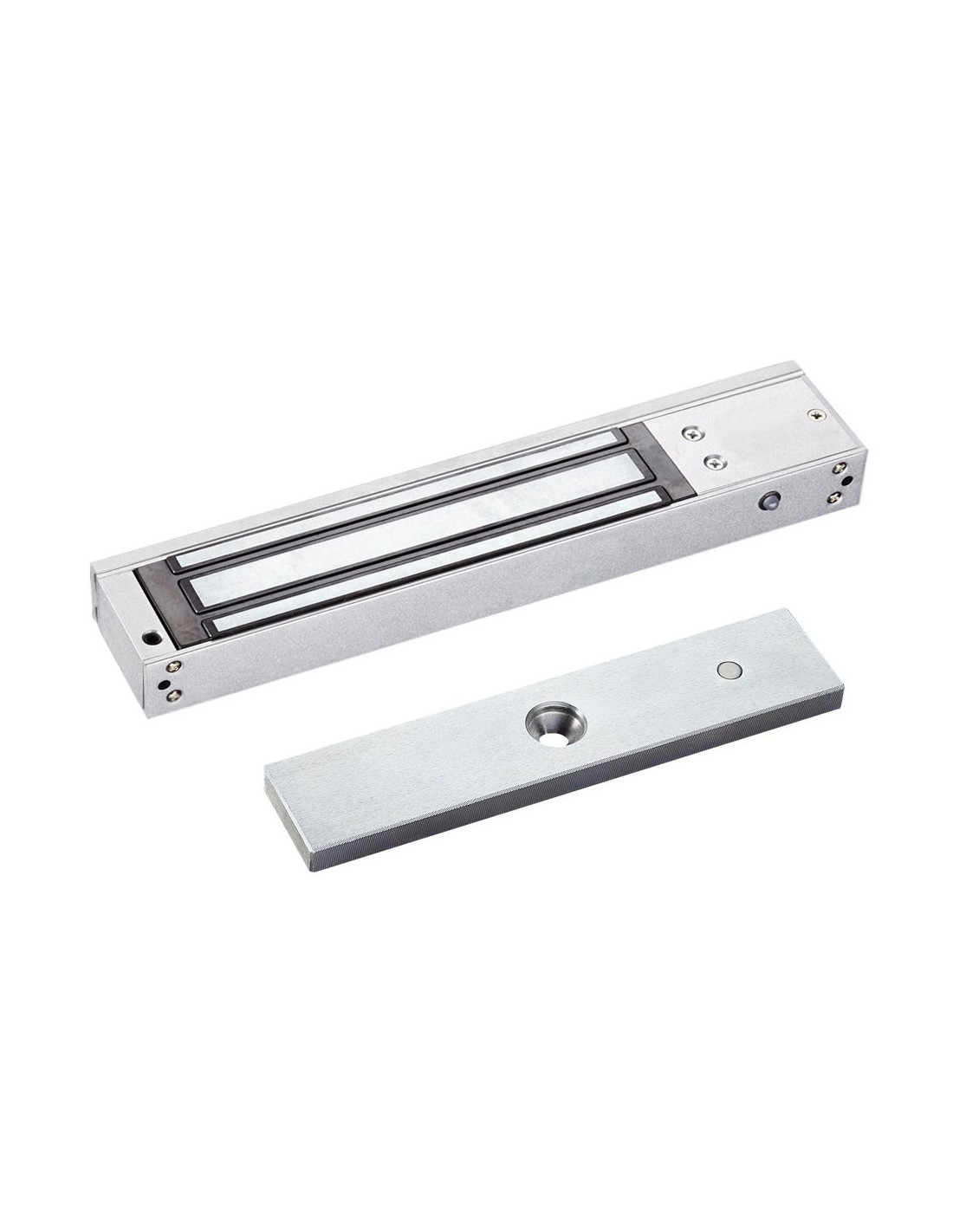 Retenedor electromagnético de superficie para una puerta con LED y sensor de estado de puerta. Retención de 280 kg. Bloqueo de puertas con supervisión