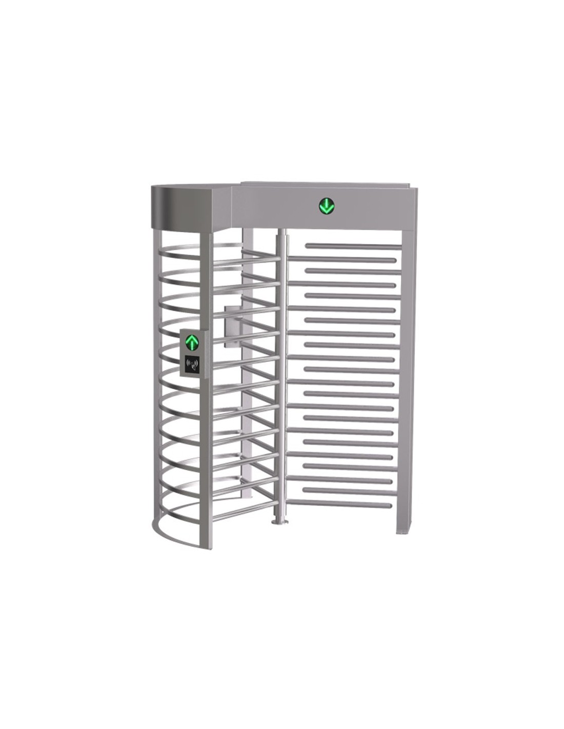 Torniquete de altura completa semiautomático con barreras giratorias de 1 paso. Acceso individual seguro, alta durabilidad. Ideal para tráfico intenso (25-48 personas/min). Compatibilidad amplia de control: RFID, huella, facial, etc. Instalación fácil de lectores. Protección IP54, acero SUS304