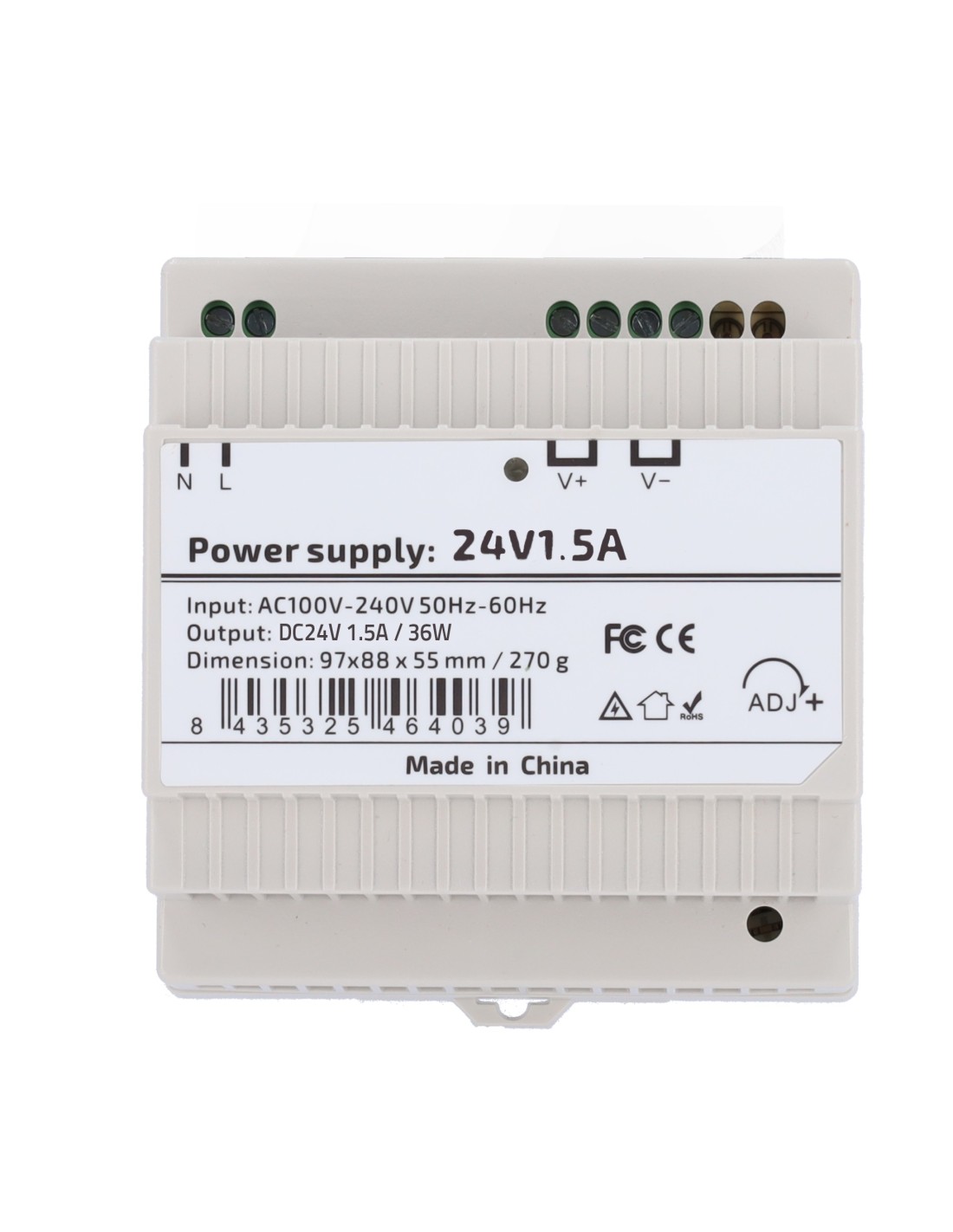 OEM DC24V1A5-DIN-P Fuente de alimentación - Salida DC 24 V 1.5 A / 36 W - Voltaje entrada AC 100V ~ 240V 50Hz-60Hz - 97 (Fo) x 5