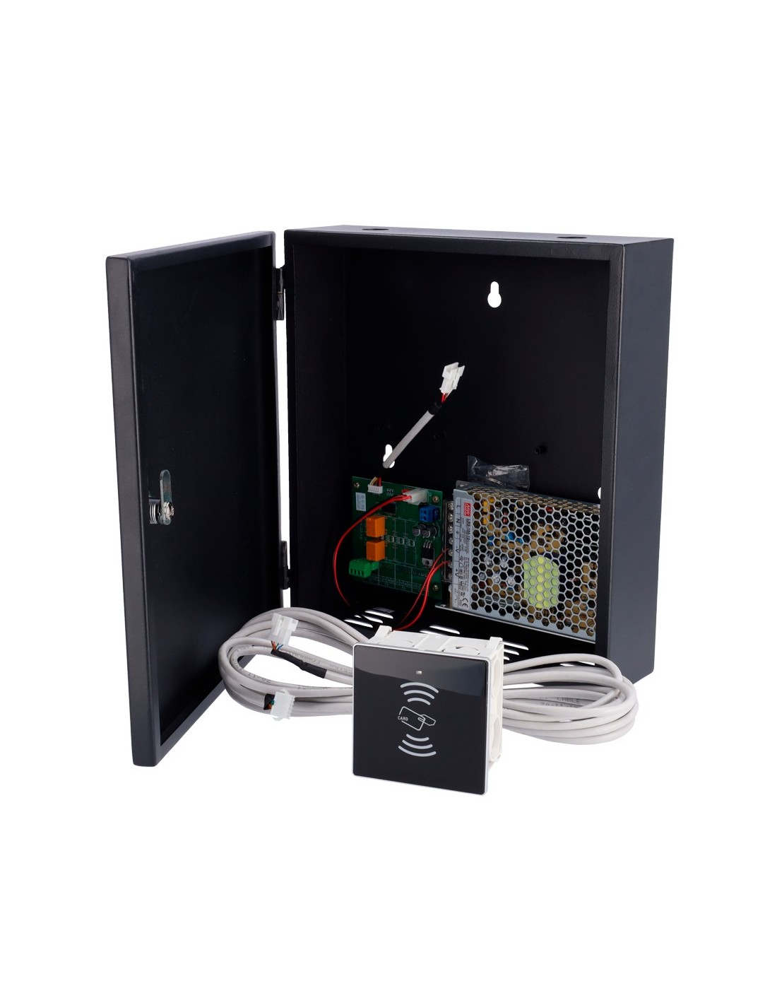 Controladora de acceso RFID - Lector de tarjetas MF - Acceso por tarjeta - Salida de relé para 1 puerta - Incluye alimentador - Gestión con software Hotel Lock System