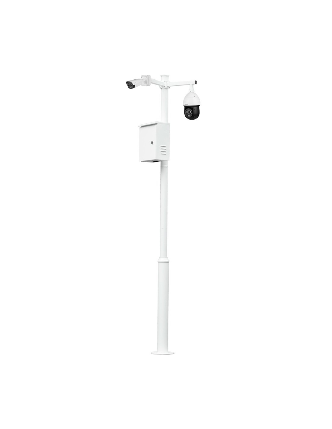 Báculo desmontable de 4,5m de altura en acero galvanizado de color blanco con soporte para cámara y speed dome