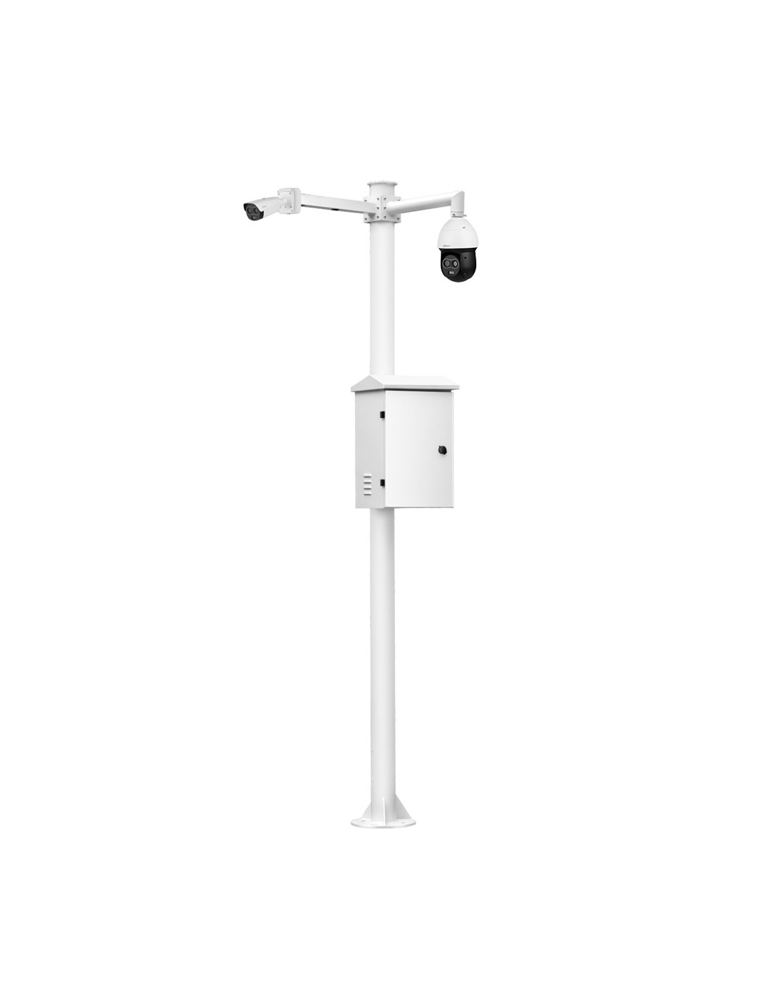 Báculo desmontable de 6m de altura en acero galvanizado de color blanco con soporte para cámara y speed dome