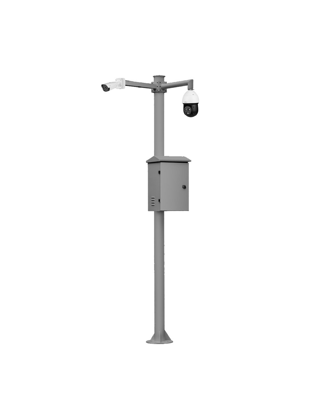 Báculo desmontable de 6m de altura en acero galvanizado de color gris con soporte para cámara y speed dome