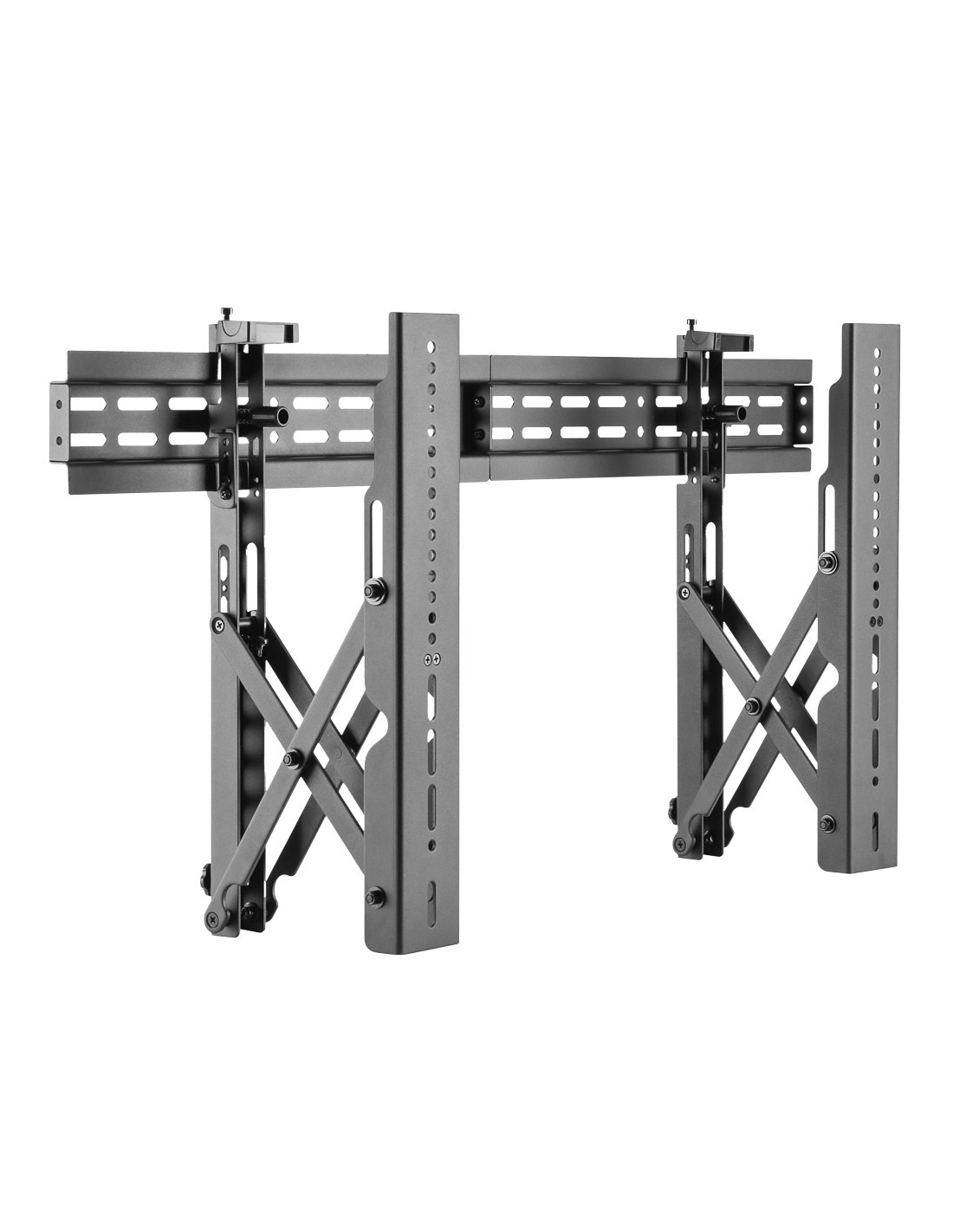 Los soportes de videowall son estructuras diseñadas para montar y sostener múltiples pantallas de forma segura y precisa. Su función principal es facilitar la instalación y el alineamiento de los monitores, garantizando una superficie visual continua y uniforme. Estos sistemas permiten ajustar la posición de cada pantalla con gran exactitud, simplificando las tareas de mantenimiento y asegurando una presentación profesional del videowall.