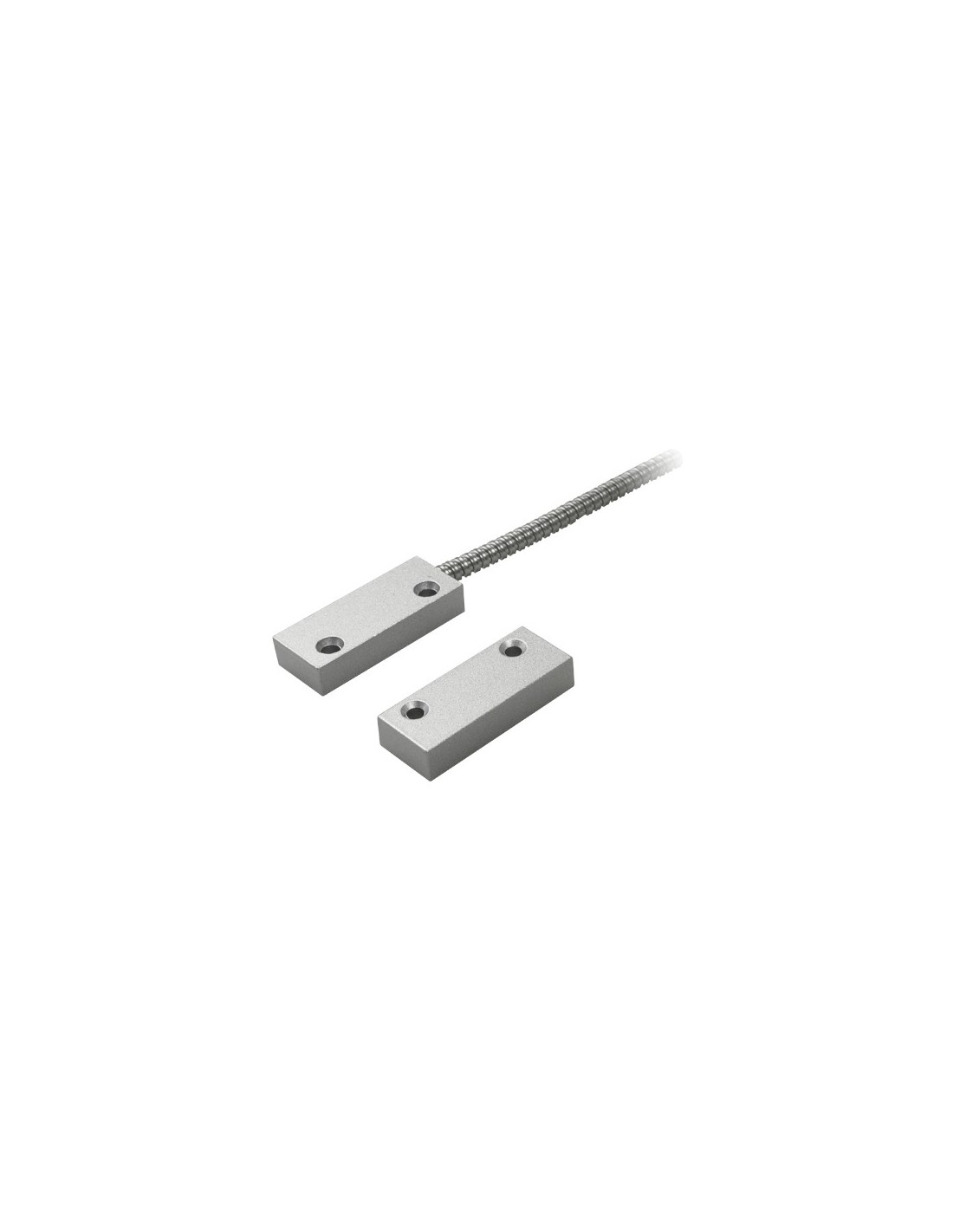 Contacto magnético - Apto para instalar en metal - Tecnología Reed Alta potencia - Sistema de conexión de 2 hilos protegidos por malla metálica - Resistencia a choques mecánicos y eléctricos