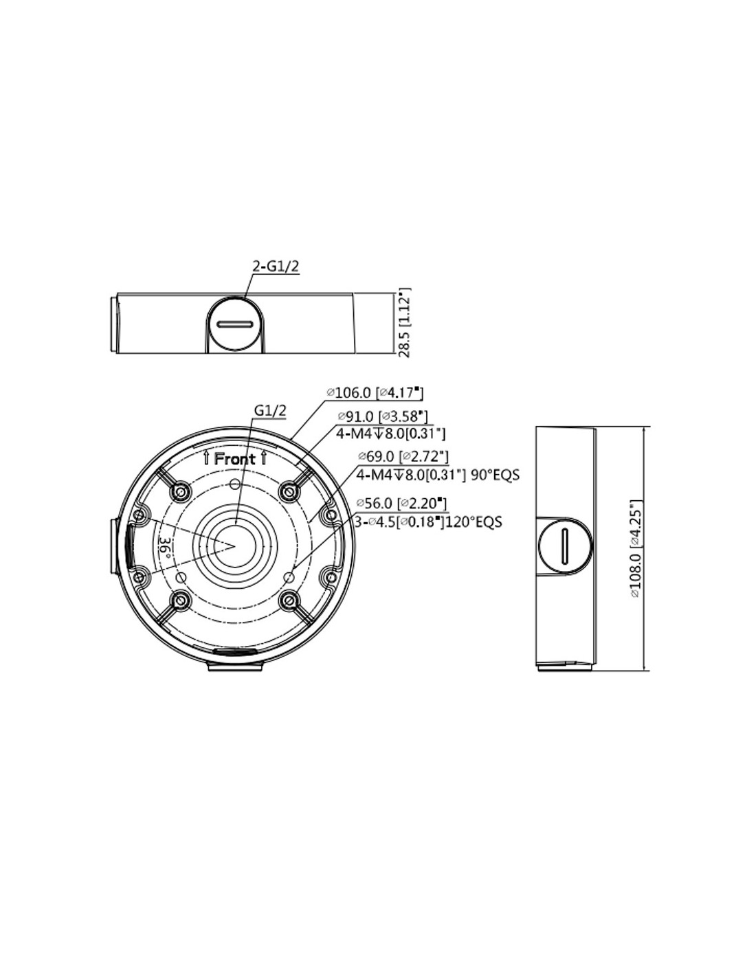 Caja de conexiones - Para cámaras domo - Apto para uso en exterior - Instalación en techo o pared - Pasador de cables - Color negro | 28.5 (Al) x 108 (Ø) mm