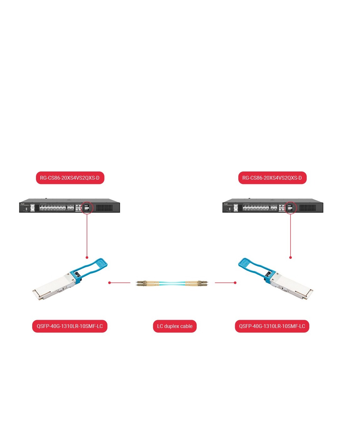 OEM QSFP-40G-1310LX4-LC Módulo transceptor QSFP+ - Longitud de Onda 1310 nm - Fibra...