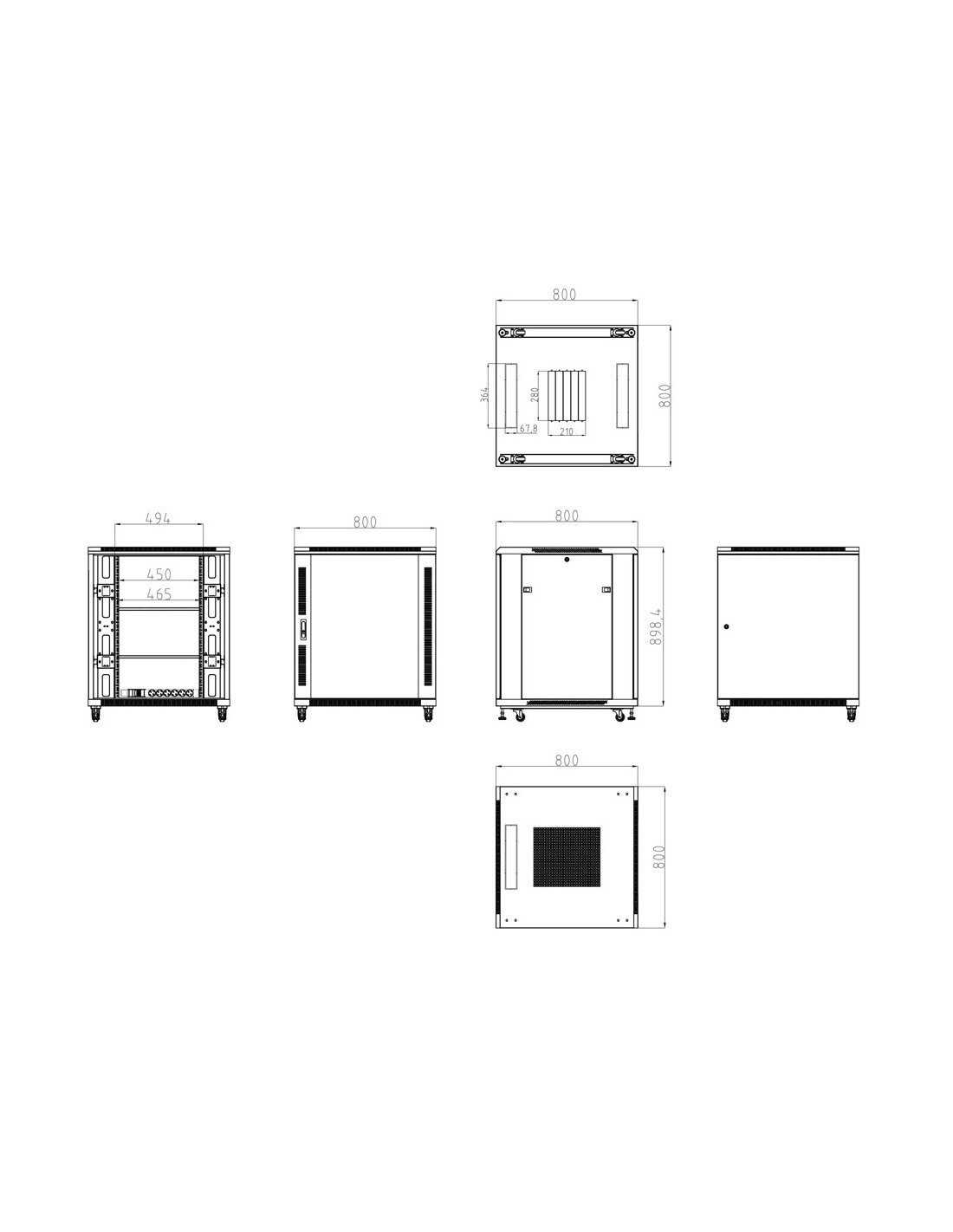 OEM RACK-18UFN-8D8W Armario rack para suelo - Hasta 18U rack de 19" (800*800) - Hasta 800 Kg de carga - Con ventilación y pa