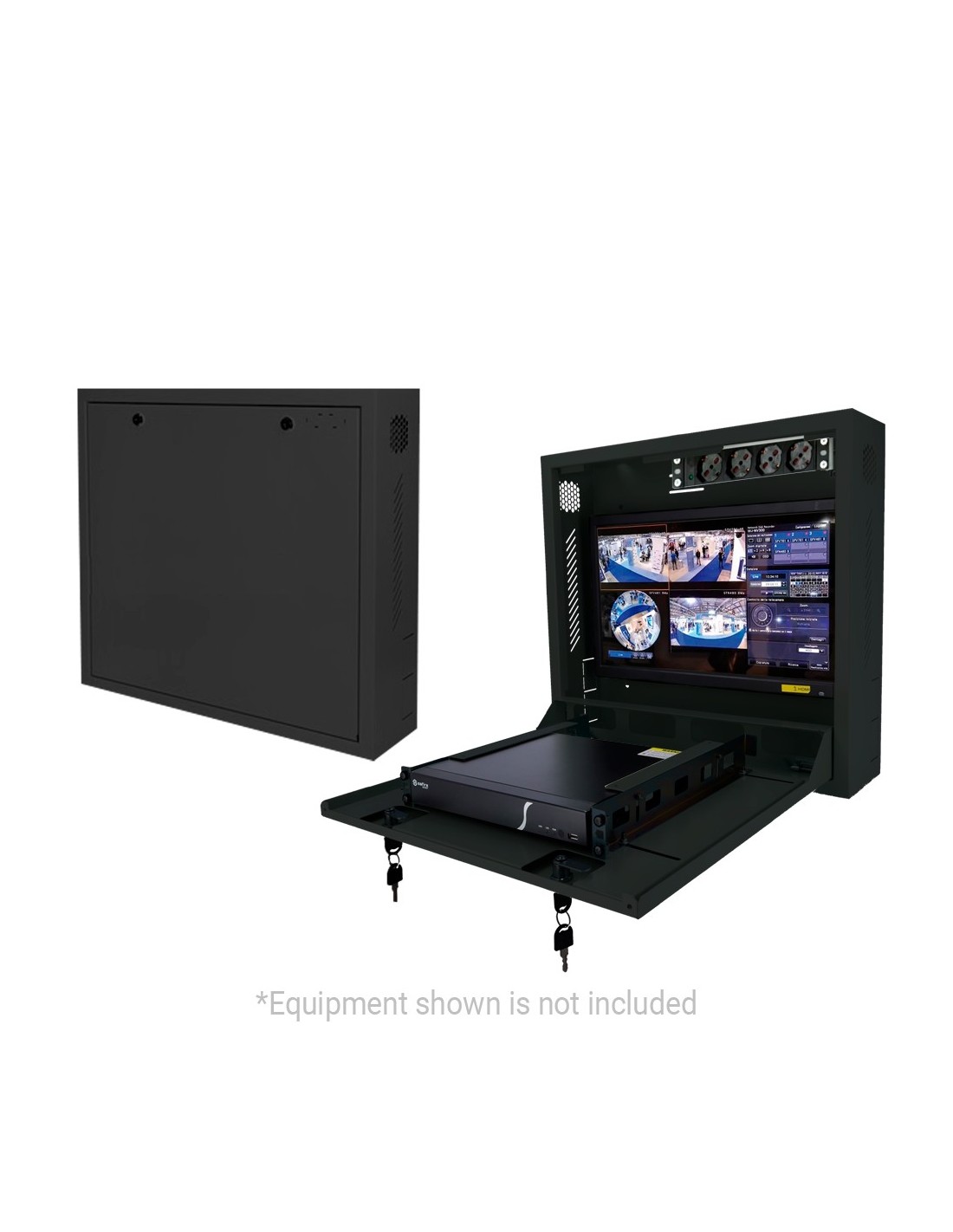 Caja de seguridad - Especial para instalación en pared - Formato vertical - 2 llaves y cerraduras - Entradas laterales para cableado - Orificios VESA para monitor