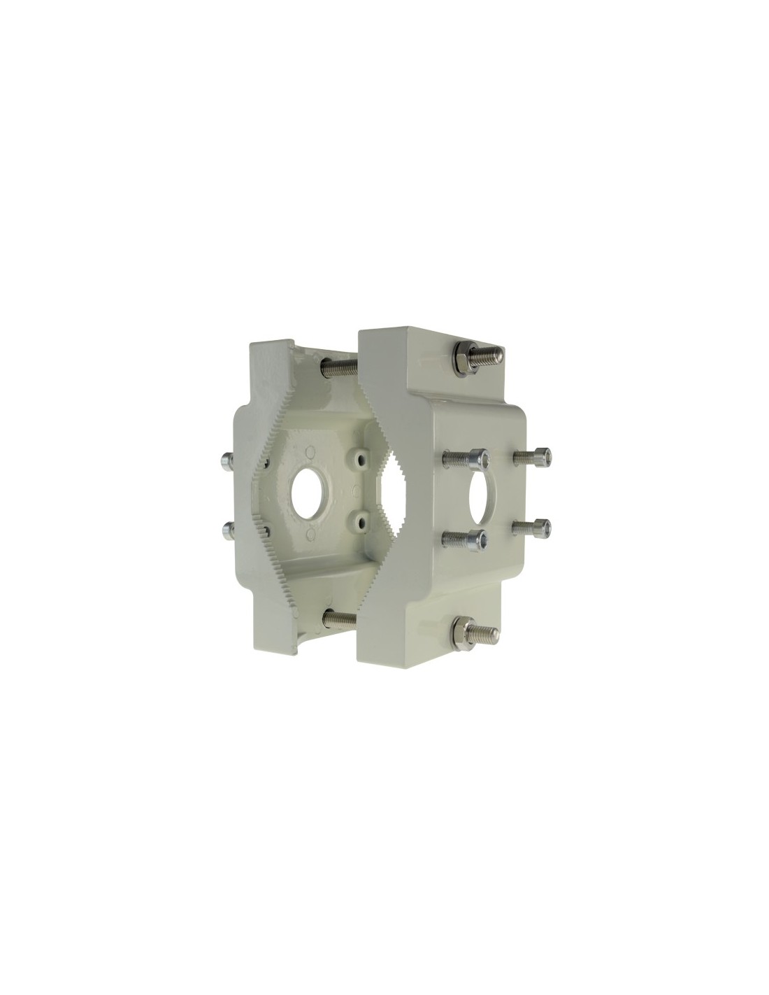 Permite la fijación de cámaras en ambas caras del soporte e incorpora orificios pasacables.