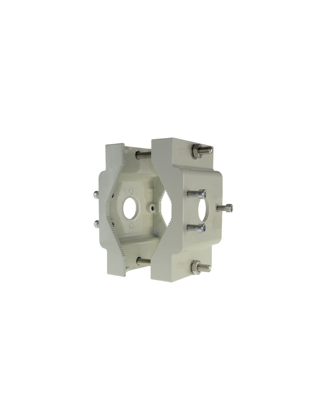 Permite la fijación de cámaras en ambas caras del soporte e incorpora orificios pasacables.