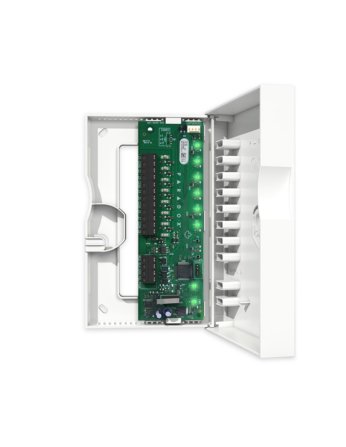 Módulo expansor de 8 zonas. Compatible con las centrales de alarma Spectra, Magellan y Digiplex Evo. Se entrega en caja de plástico ABS. EN50131 de Grado 3.