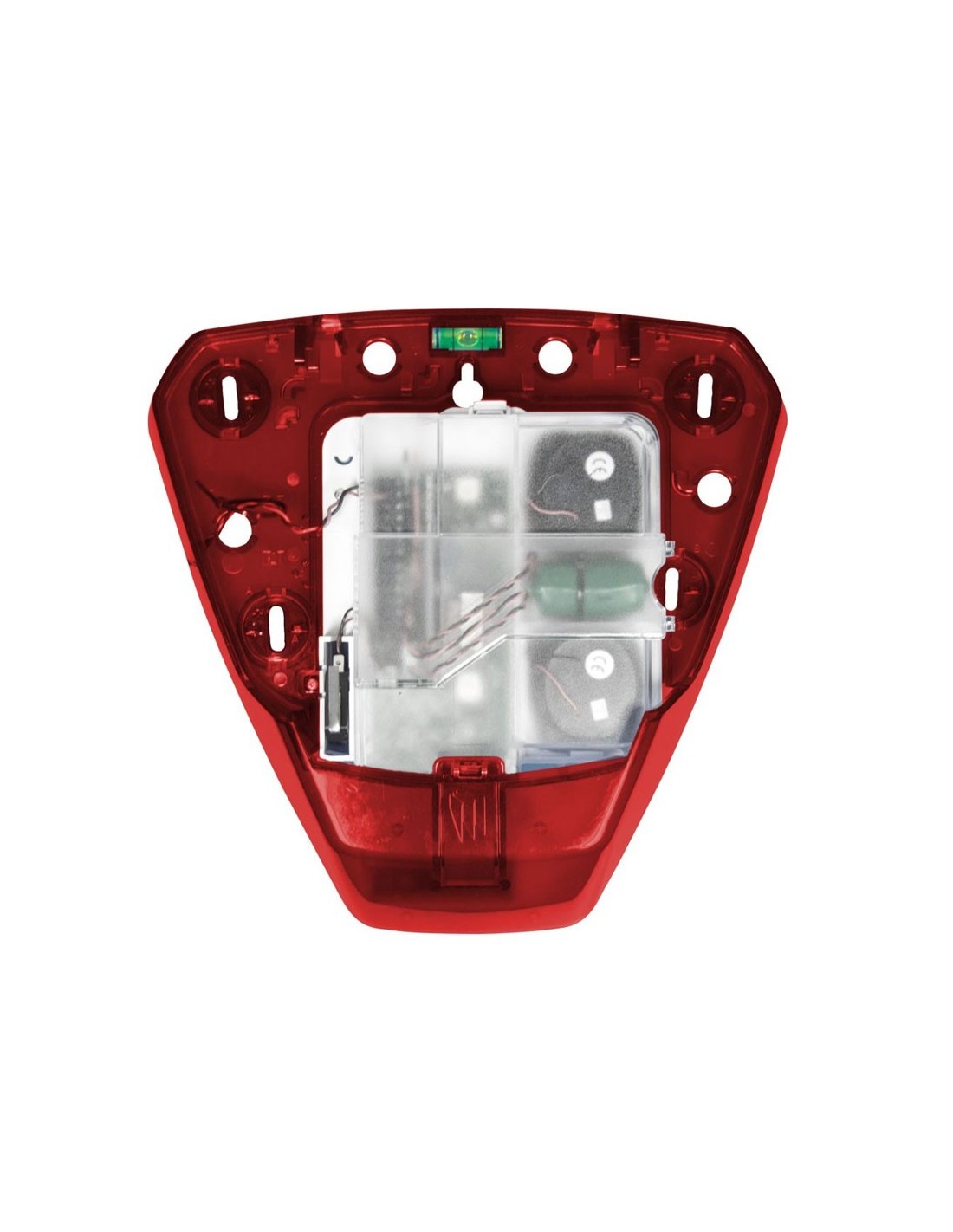 Base roja de sirena Pyronix con módulo PCB y batería. Con Piezoeléctrico. Sin cubierta.