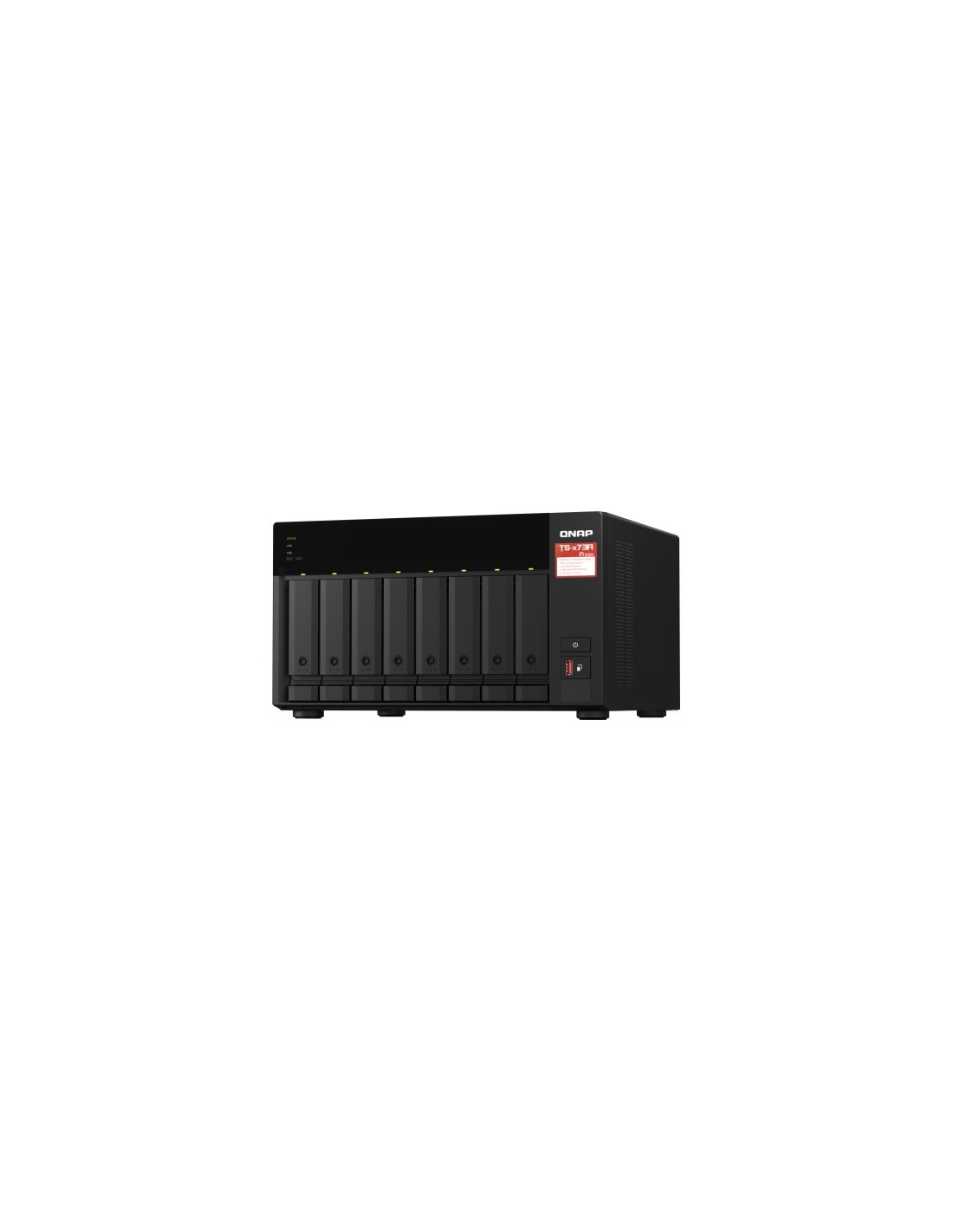 QNAP TS-873A. Capacidad de almacenamiento total instalado: 30,72 TB, Tipo de unidades de almacenamiento instaladas: SSD, Tipos de unidades de almacenamiento admitidas: HDD & SSD. Familia de procesador: Ryzen Embedded, Fabricante de procesador: AMD, Modelo del procesador: V1500B. Memoria interna: 8 GB, Tipo de memoria interna: DDR4, RAM máximo soportado: 64 GB. Ethernet LAN, velocidad de transferencia de datos: 100,1000,2500 Mbit/s. Tipo de chasis: Torre, Tipo de enfriamiento: Activo, Color del producto: Negro
