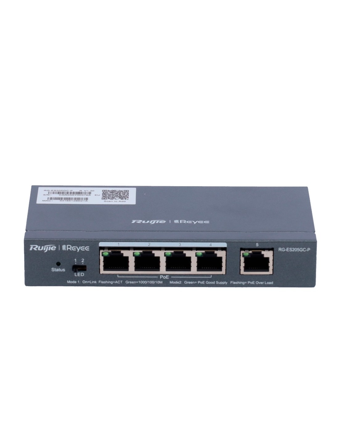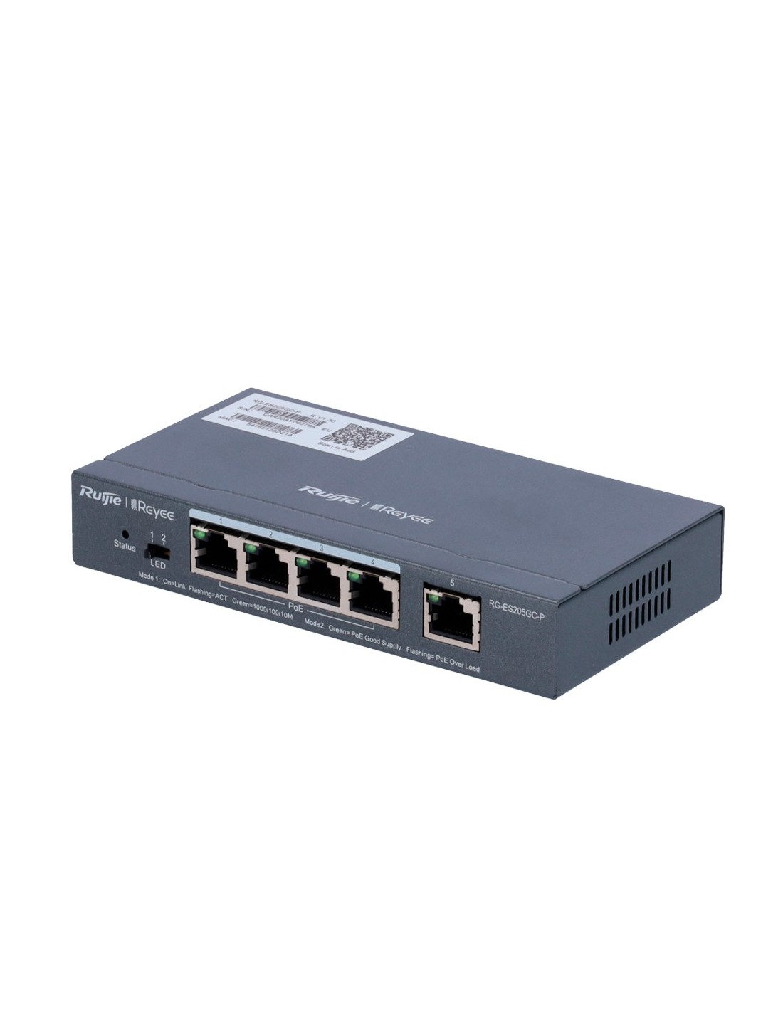 REYEE RG-ES205GC-P Reyee Switch PoE Cloud Gestionable - 4 puertos PoE 802.3af/at + 1 Uplink RJ45 - 4 RJ45 10/100/1000Mbps + 1 RJ