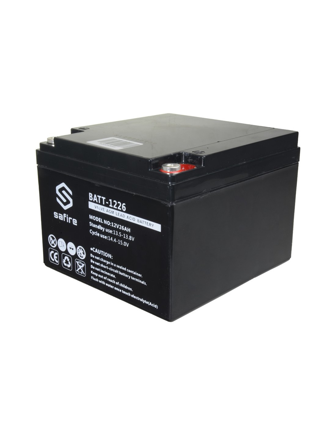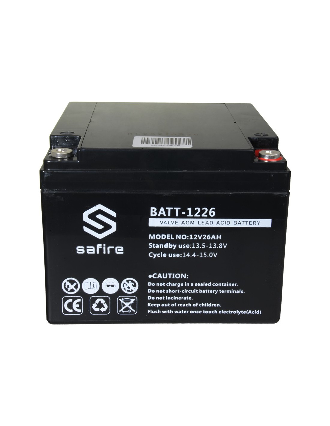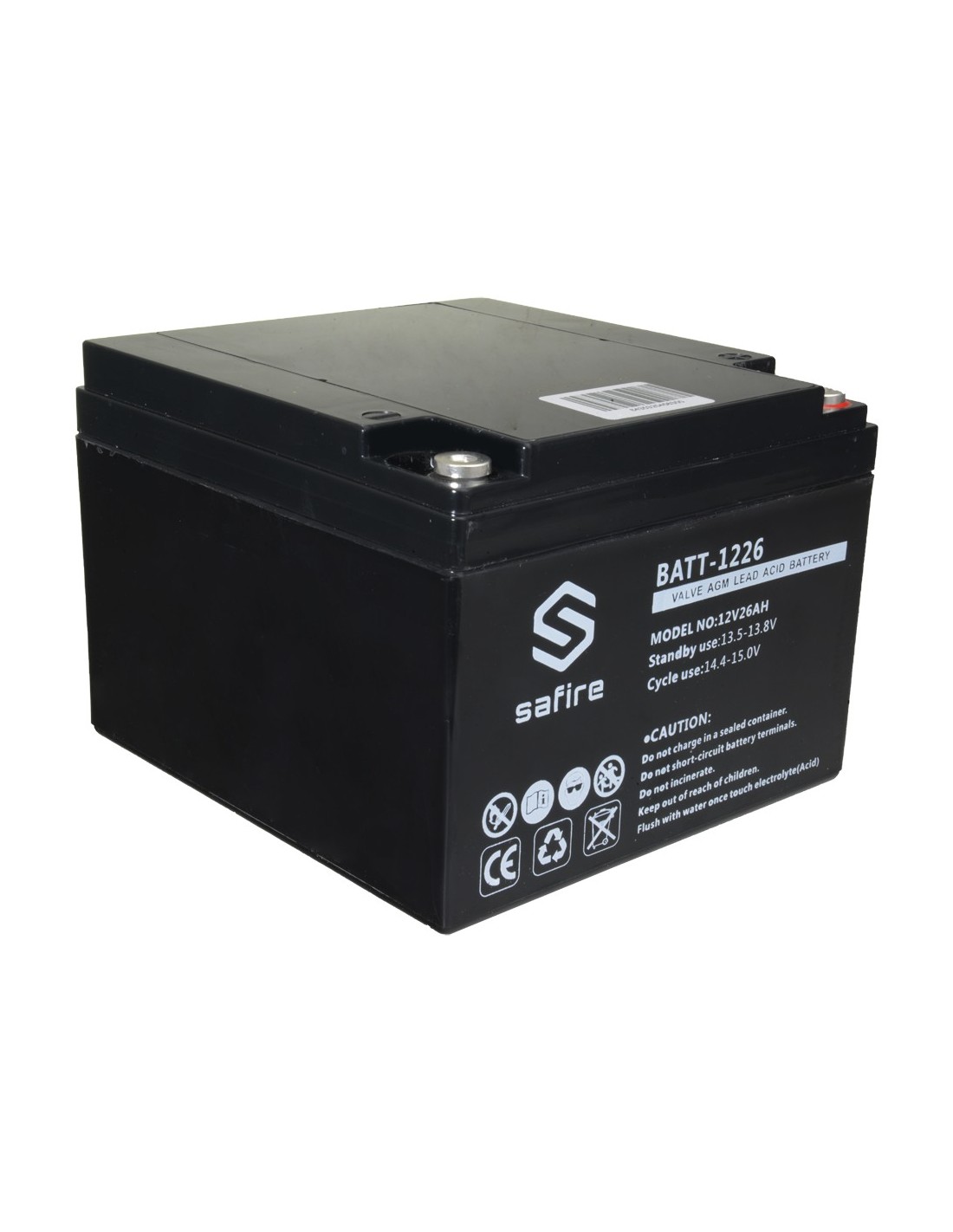 SAFIRE BATT-1226 Batería recargable - Tecnología plomo ácido AGM - Voltaje 12 V - Capacidad 26 Ah - 182 x 166 x 126 mm / 8400 g