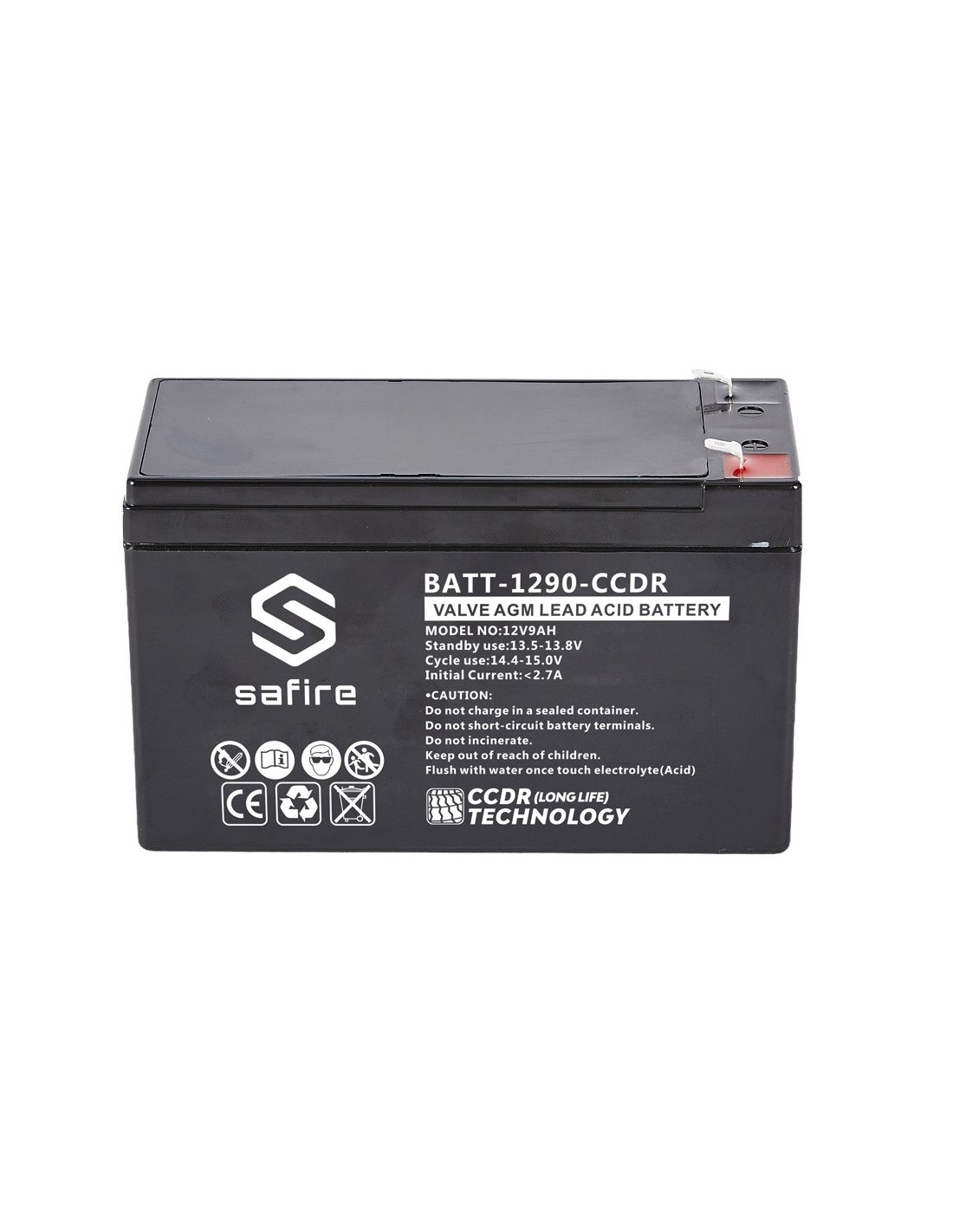 SAFIRE BATT-1290-CCDR Batería recargable - Tecnología plomo ácido AGM - CCDR - Tensión 12V - Capacidad 9Ah - 100 x 65 x 151 mm /