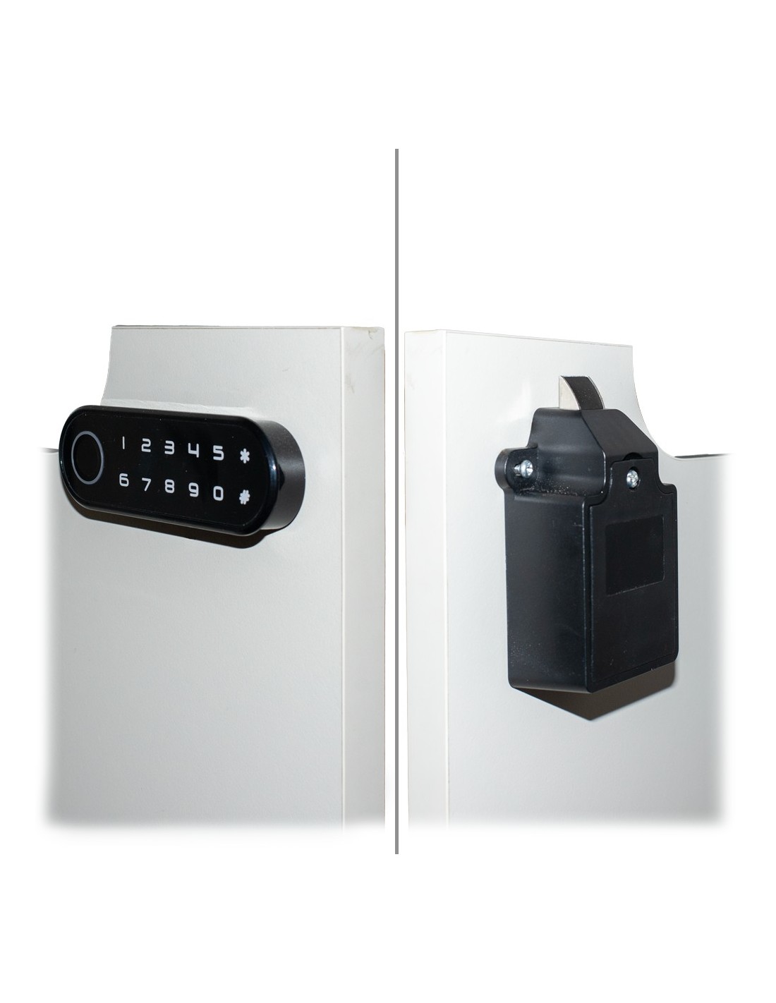 Cerradura inteligente para taquillas - Identificación por huella o contraseña - Alimentación 4 x AA - Modo público: aperturas usuarios aleatorios - Llave maestra para apertura de emergencia - Gestión autónoma (sin software)