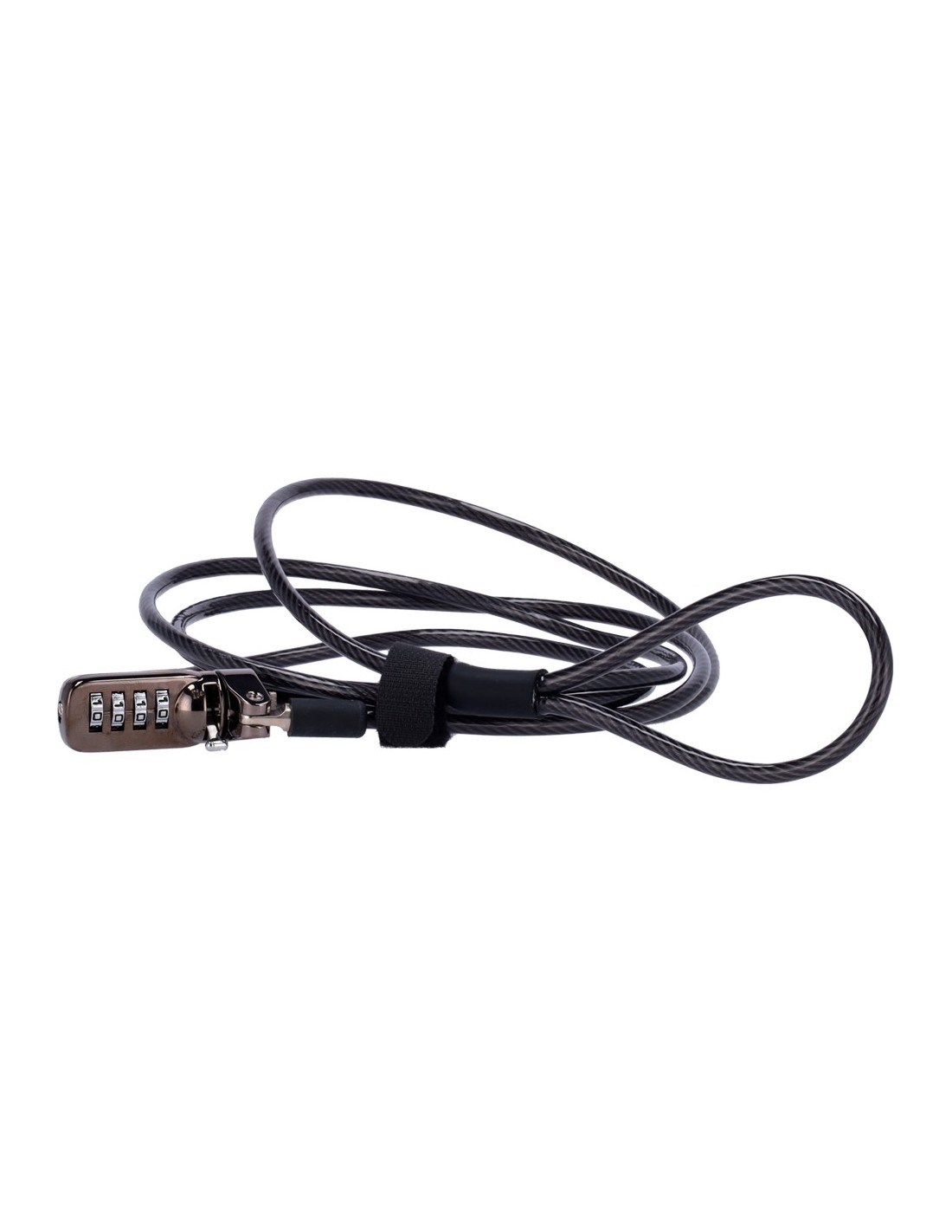 Cordón antihurto EAS - Apto para portátiles - Apertura con código de 4 dígitos - Dimensiones cerradura: 5 (An) x 7 (Al) mm - Longitud cordón: 200 mm - Fabricado en acero y aluminio