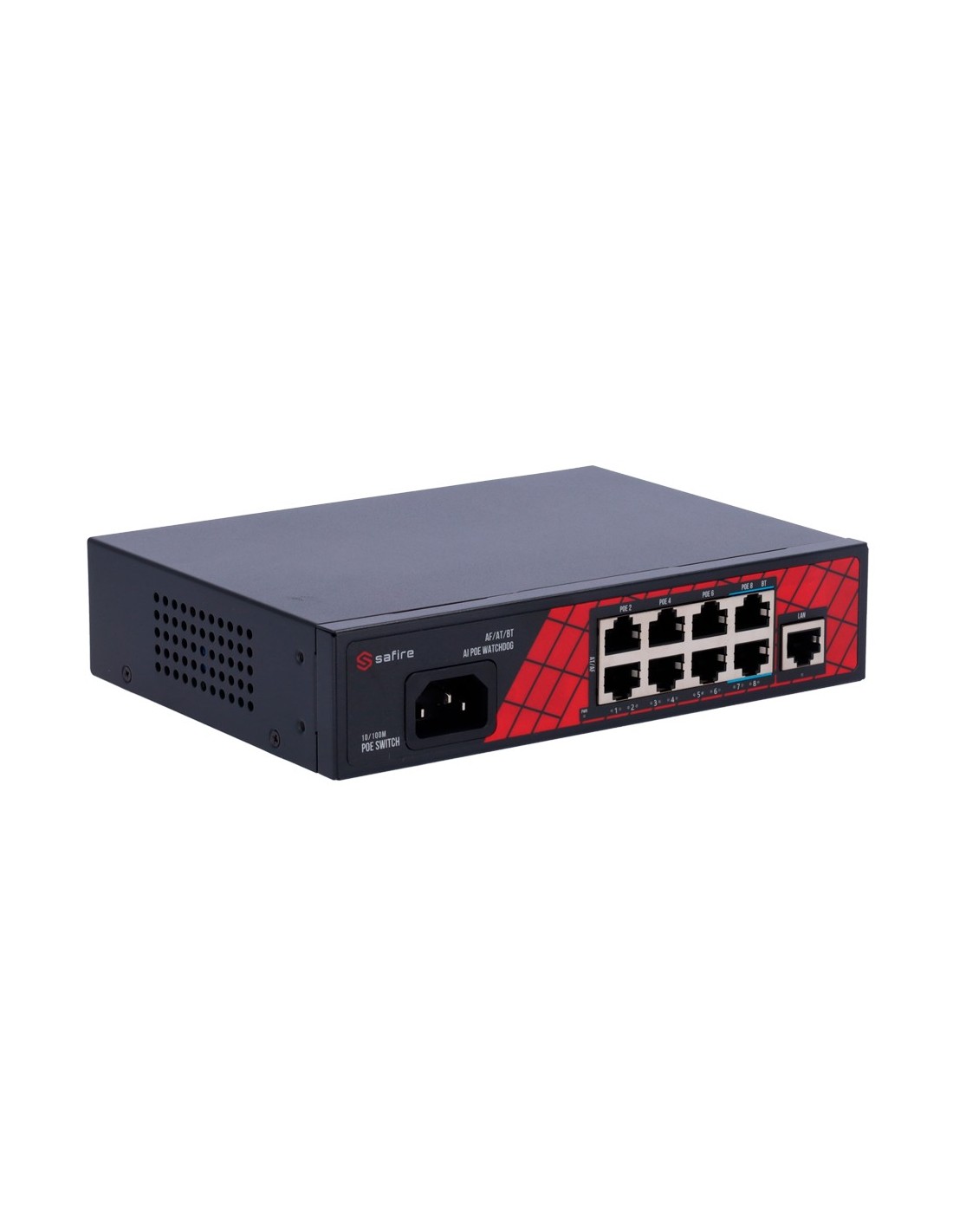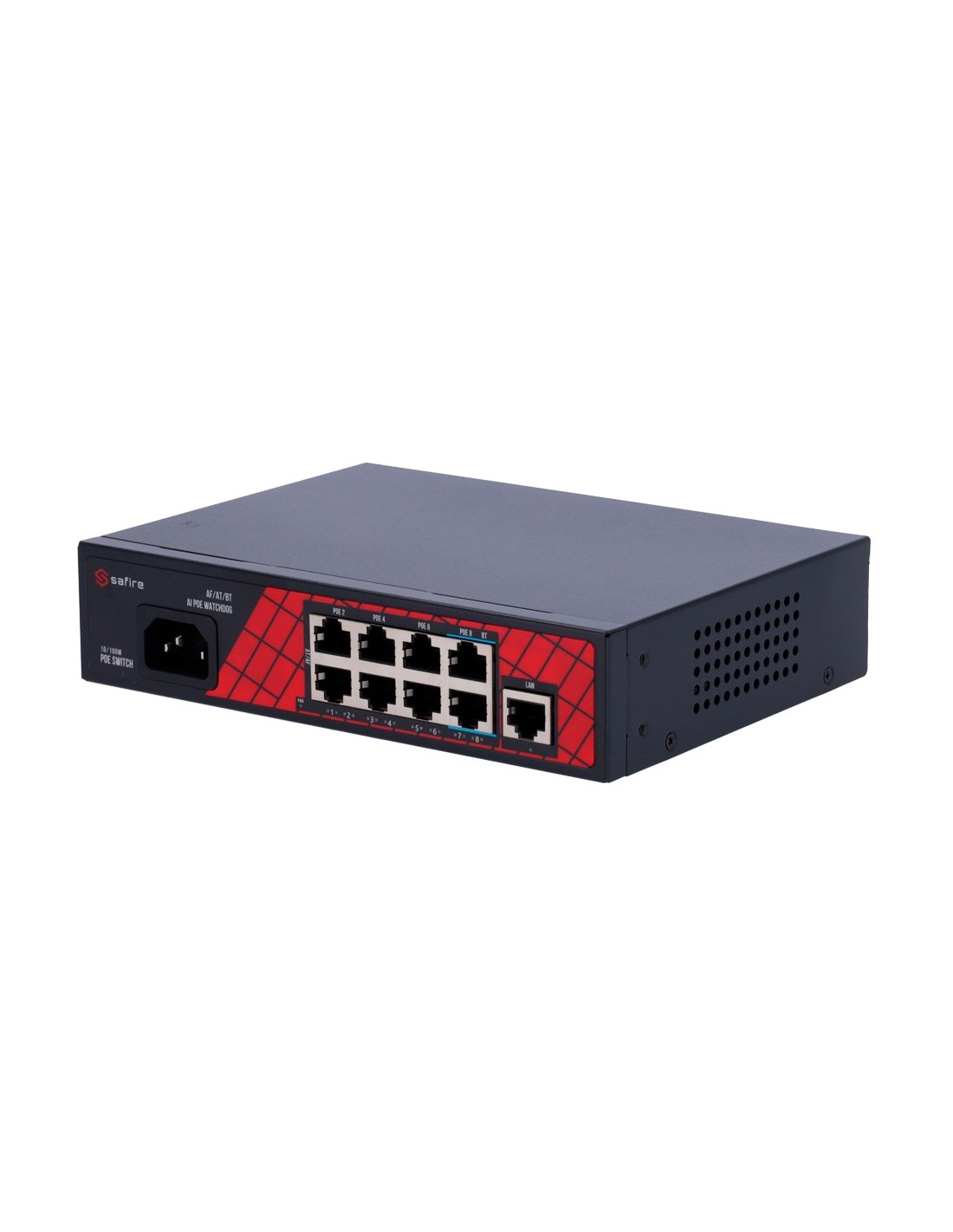 SAFIRE SF-SW0908HIPOE-120 Safire Switch Hi-PoE - 8 puertos PoE + 1 Uplink RJ45 - Velocidad de puertos 10/100Mbps - 6 Puertos PoE