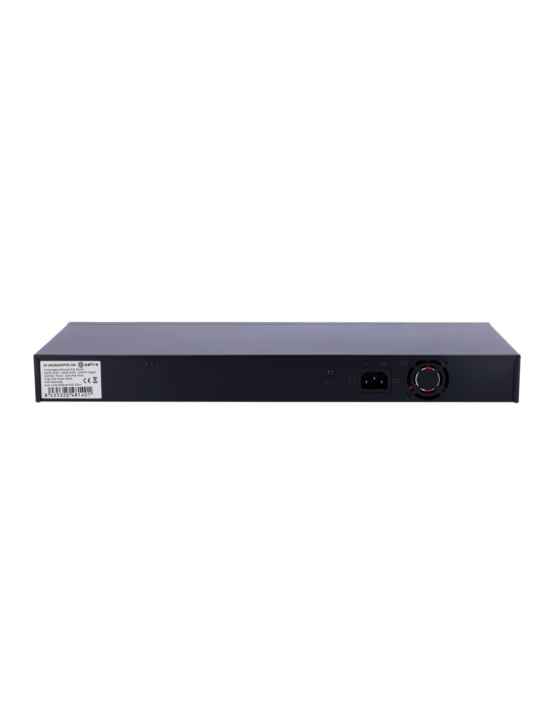 SAFIRE SF-SW2824HIPOE-300 Safire Switch Hi-PoE - 24 puertos + 2 SFP Uplink + 2 Uplink RJ45 - Velocidad de puertos Fast Ethernet