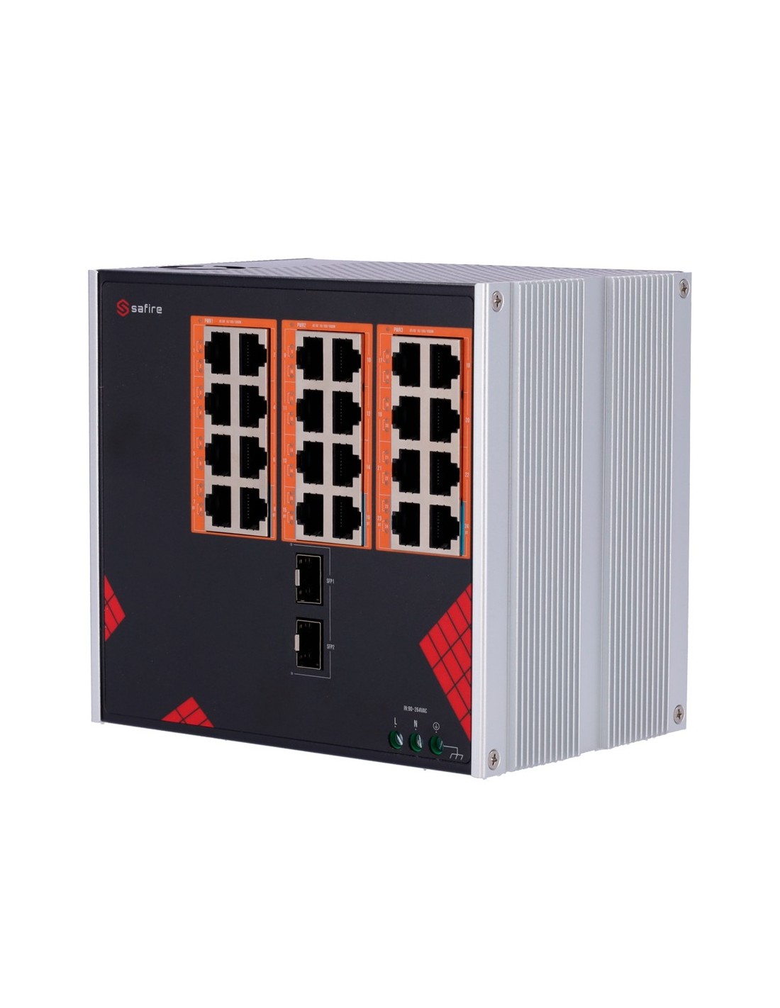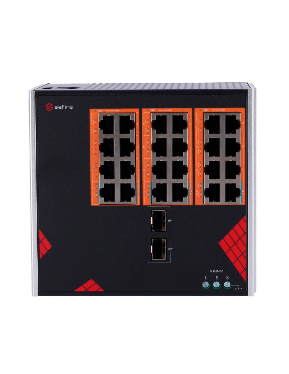 SAFIRE SF-SWI2624HIPOE-GF-AC-390-DIN Safire Switch Industrial Alimentación AC 90~264V - 24 puertos Gigabit + 2 SFP Gigabit - 18
