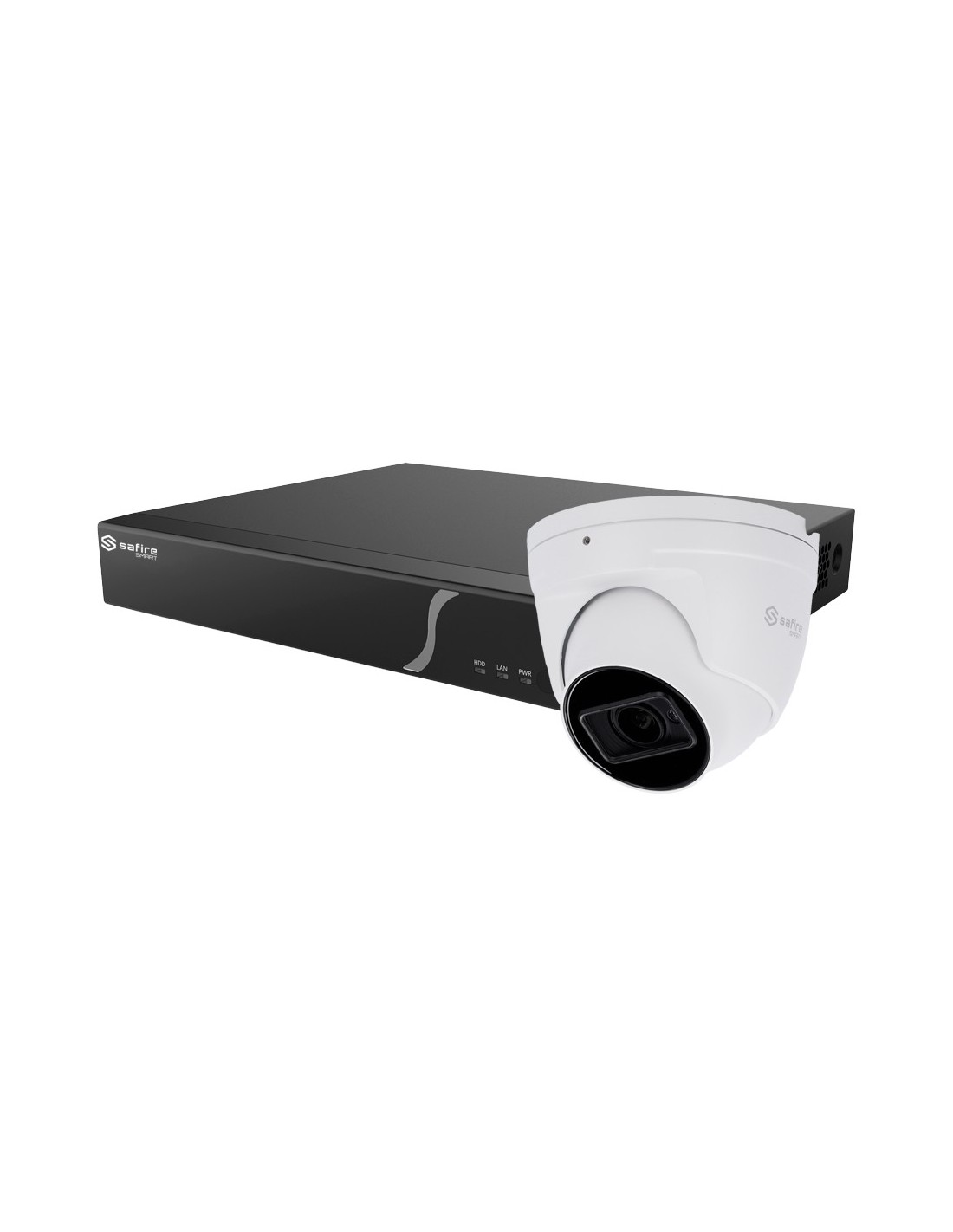 Kit de Inteligencia Artificial Safire Smart - 1 Cámara Turret de 4Mpx - 1 NVR de 8CH con audio y alarma - 1 Disco duro de 1TB - Salida de vídeo HDMI 4K - Clasificación de humano y vehículo avanzada