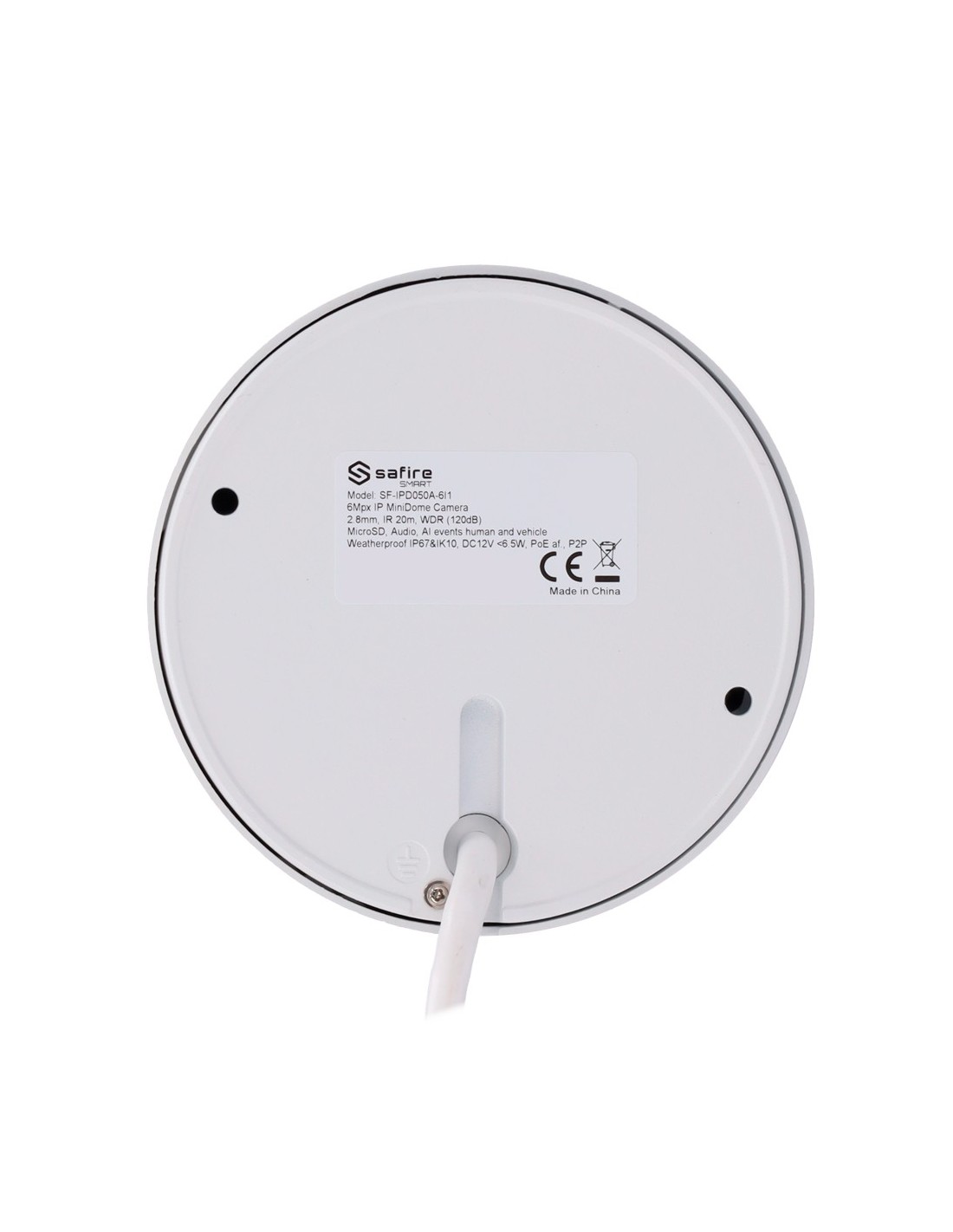 Safire Smart - Cámara MiniDomo IP gama I1 AI Avanzada - Resolución 6 Megapíxel (3296×1856) - Lente 2.8 mm | Micrófono | IR 20m - AI Avanzada:Humano, vehículo y vehículo 2 ruedas - Impermeabilidad IP67 | PoE (IEEE802.3af)
