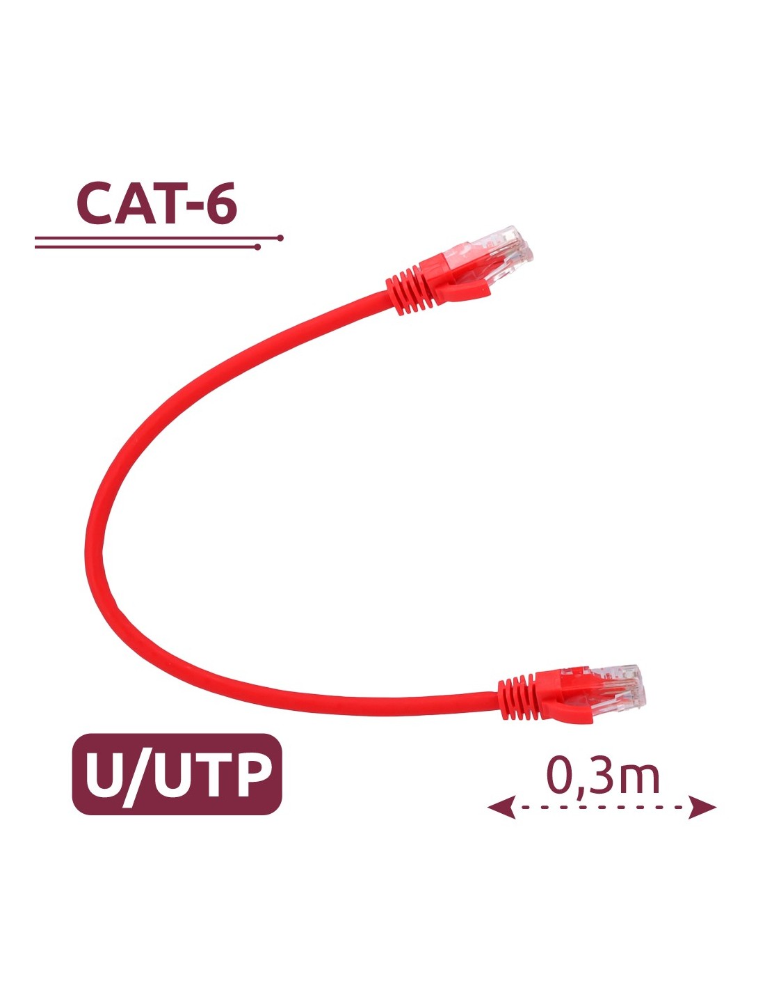 Cable UTP - Ethernet - Conectores RJ45 - Categoría 6 - 0,3 m - Color rojo