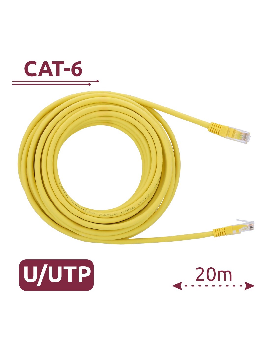 Cable UTP - Ethernet - Conectores RJ45 - Categoría 6 - 20 m - Color amarillo