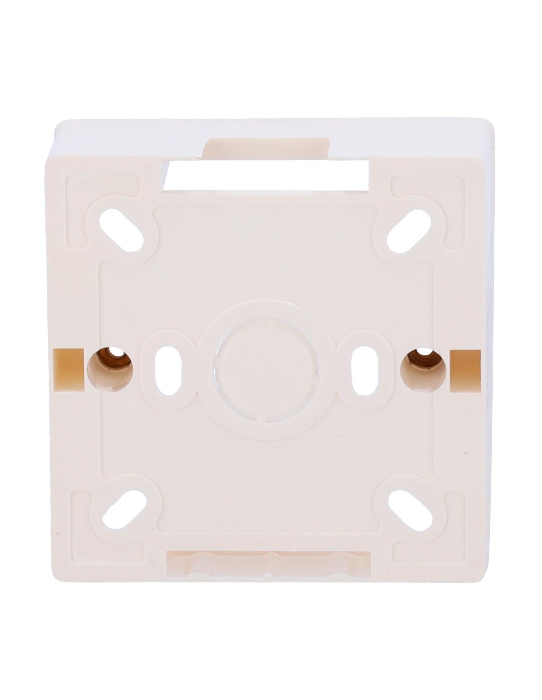 Caja de mecanismo para pulsador - Compatible con selección de producto - Instalación empotrada - Fabricado en plástico - Medidas 86 (Al) x 86 (An) x 33 (Fo) mm - Orificio para conexiones