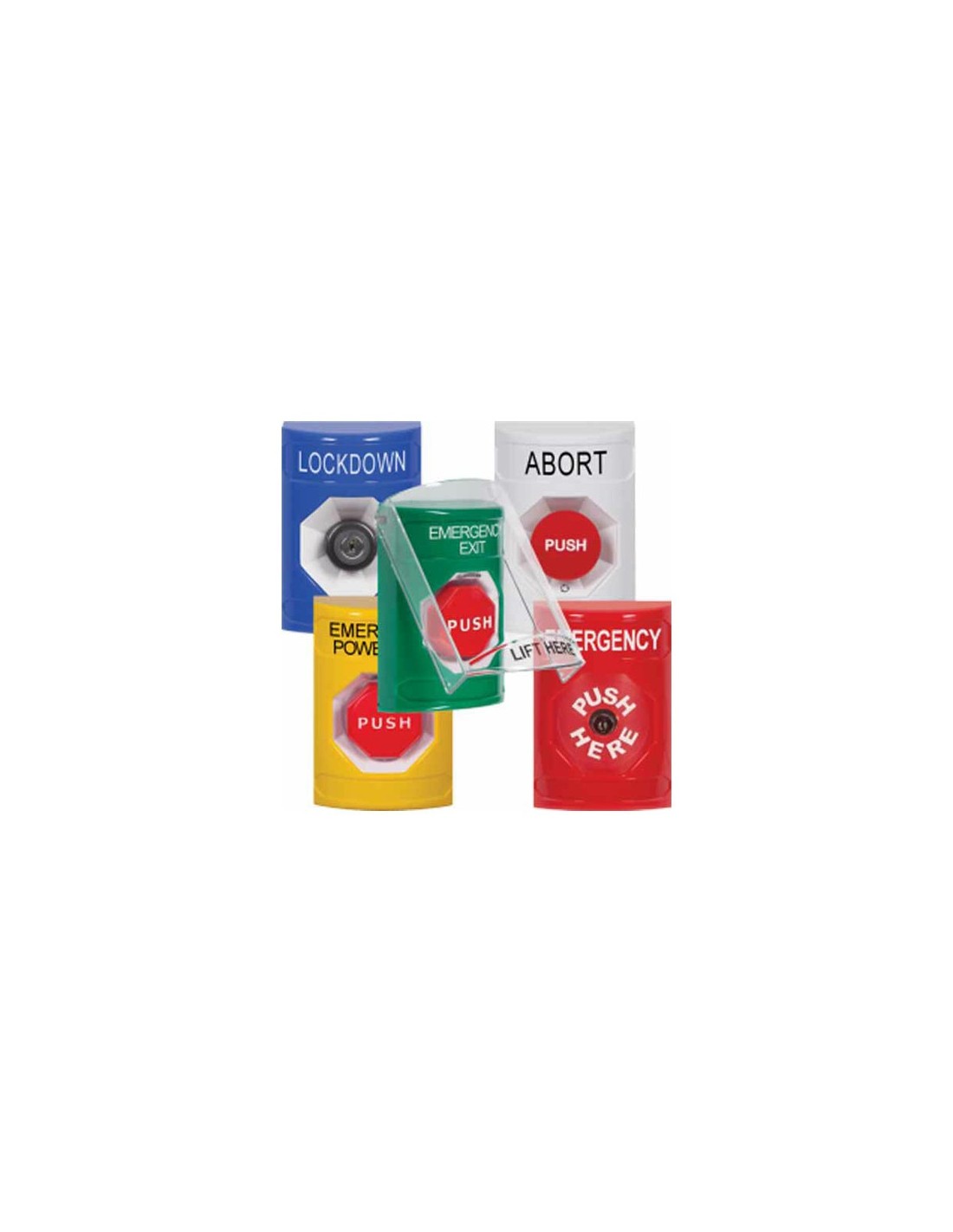 STI. Pulsador SS2. Seta de emergencia con llave. Color azul