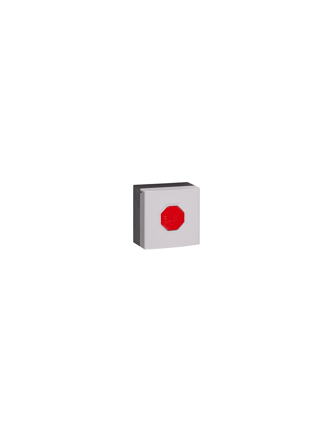 STI. Pulsador WSS3. Carcasa blanca botón rojo. Enclavable.